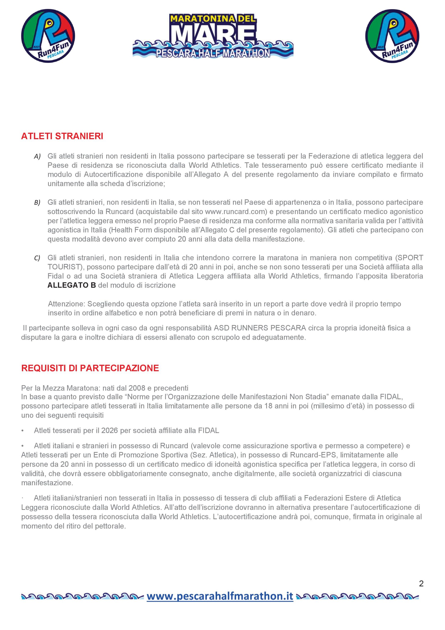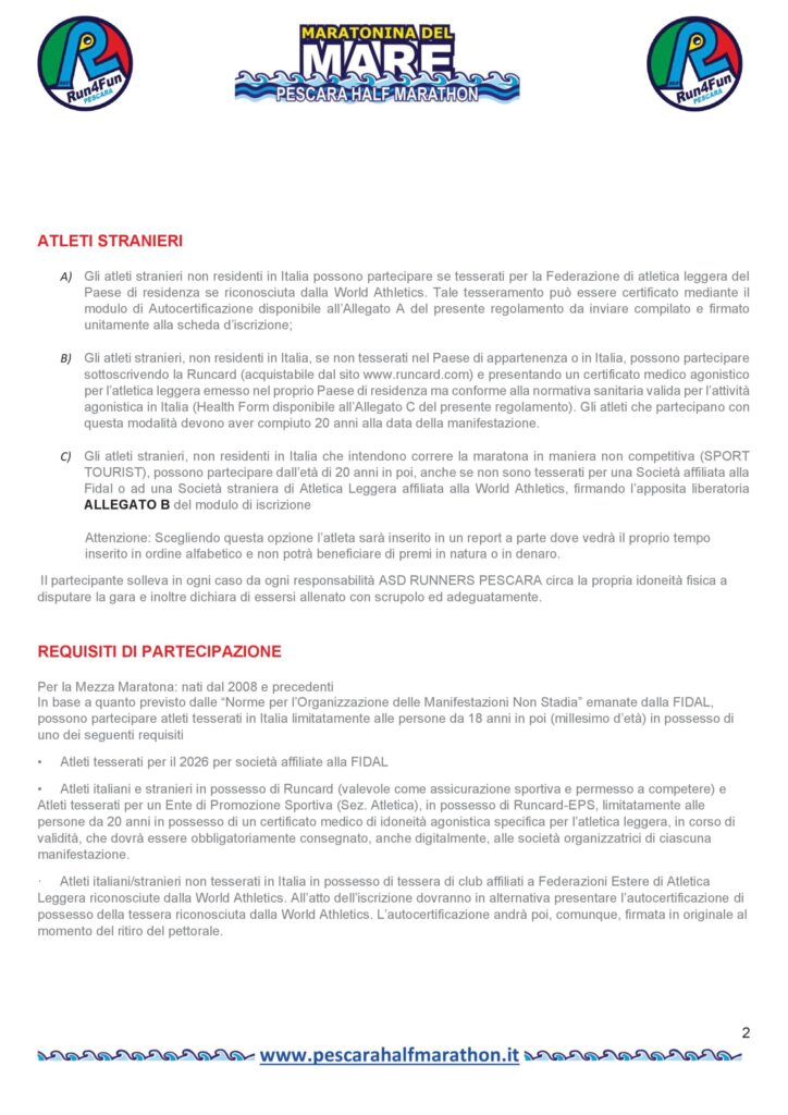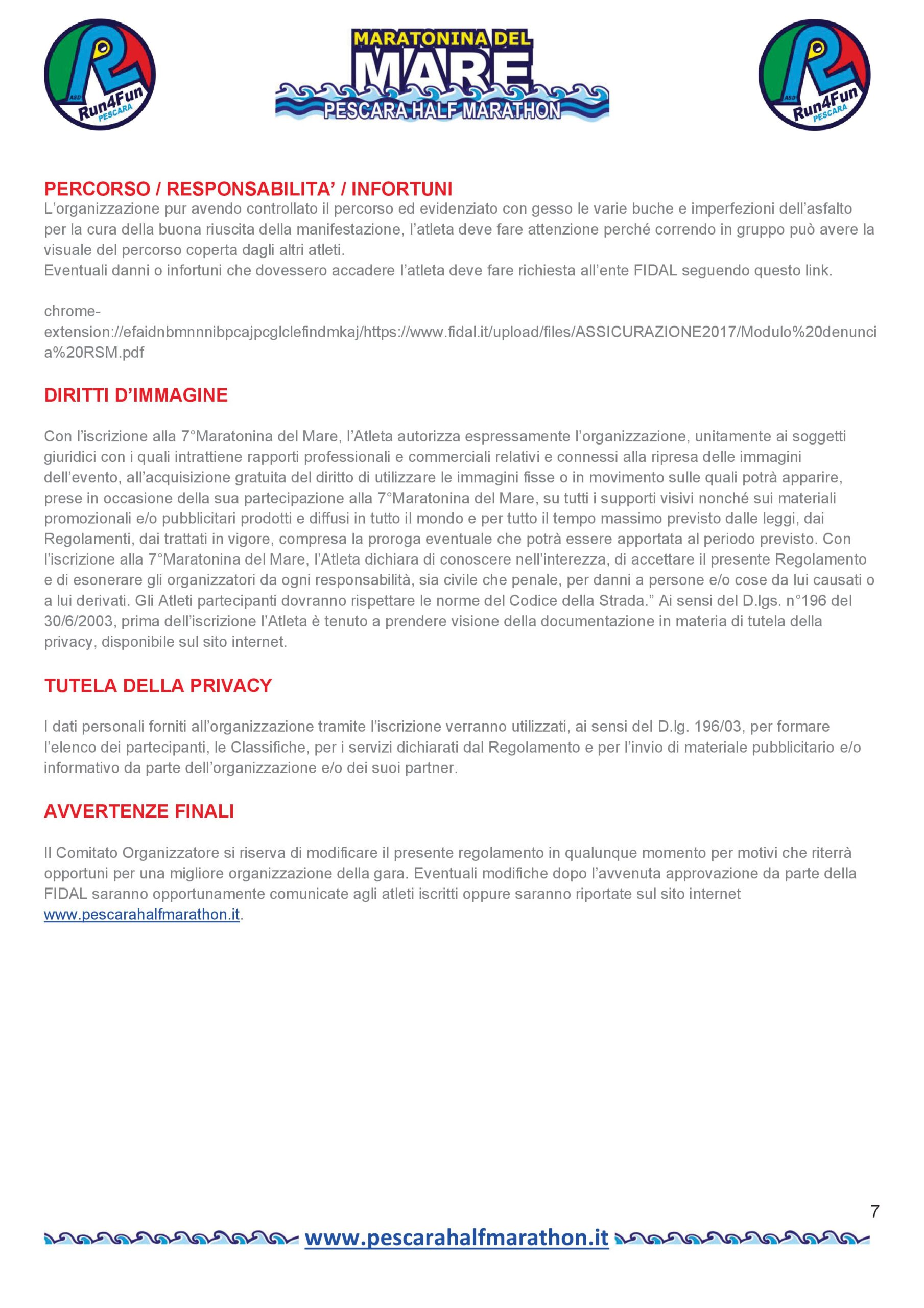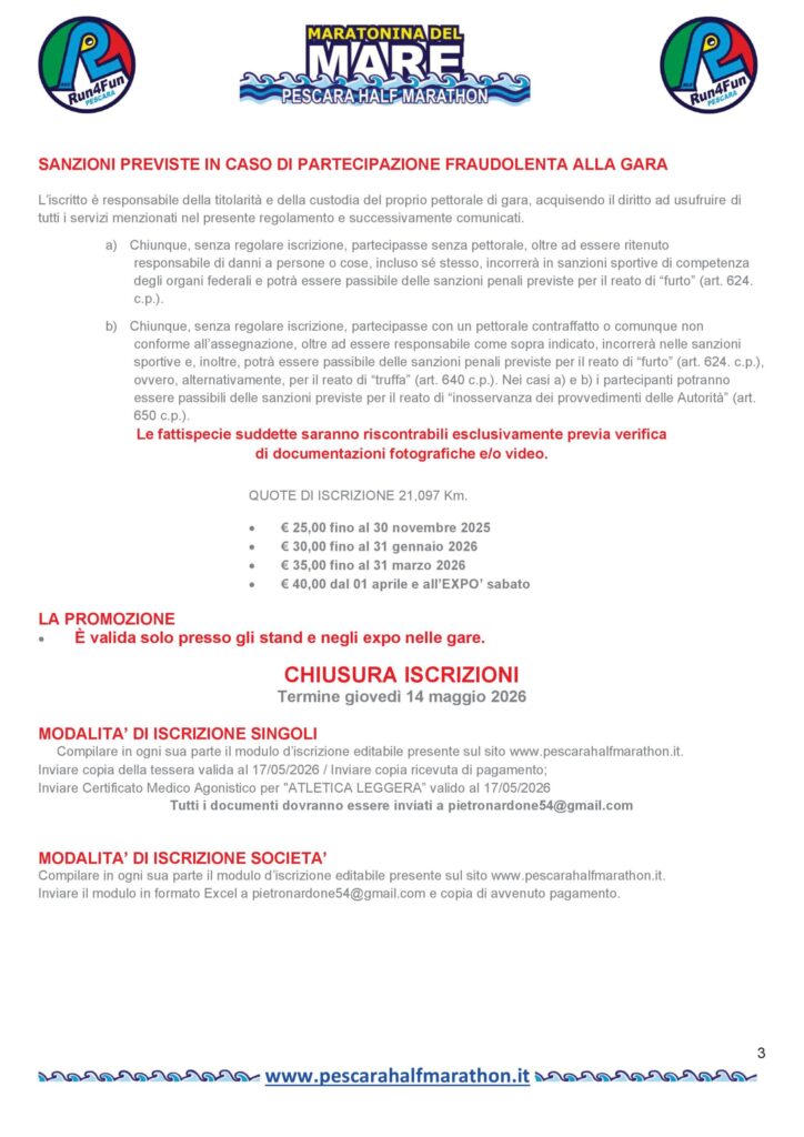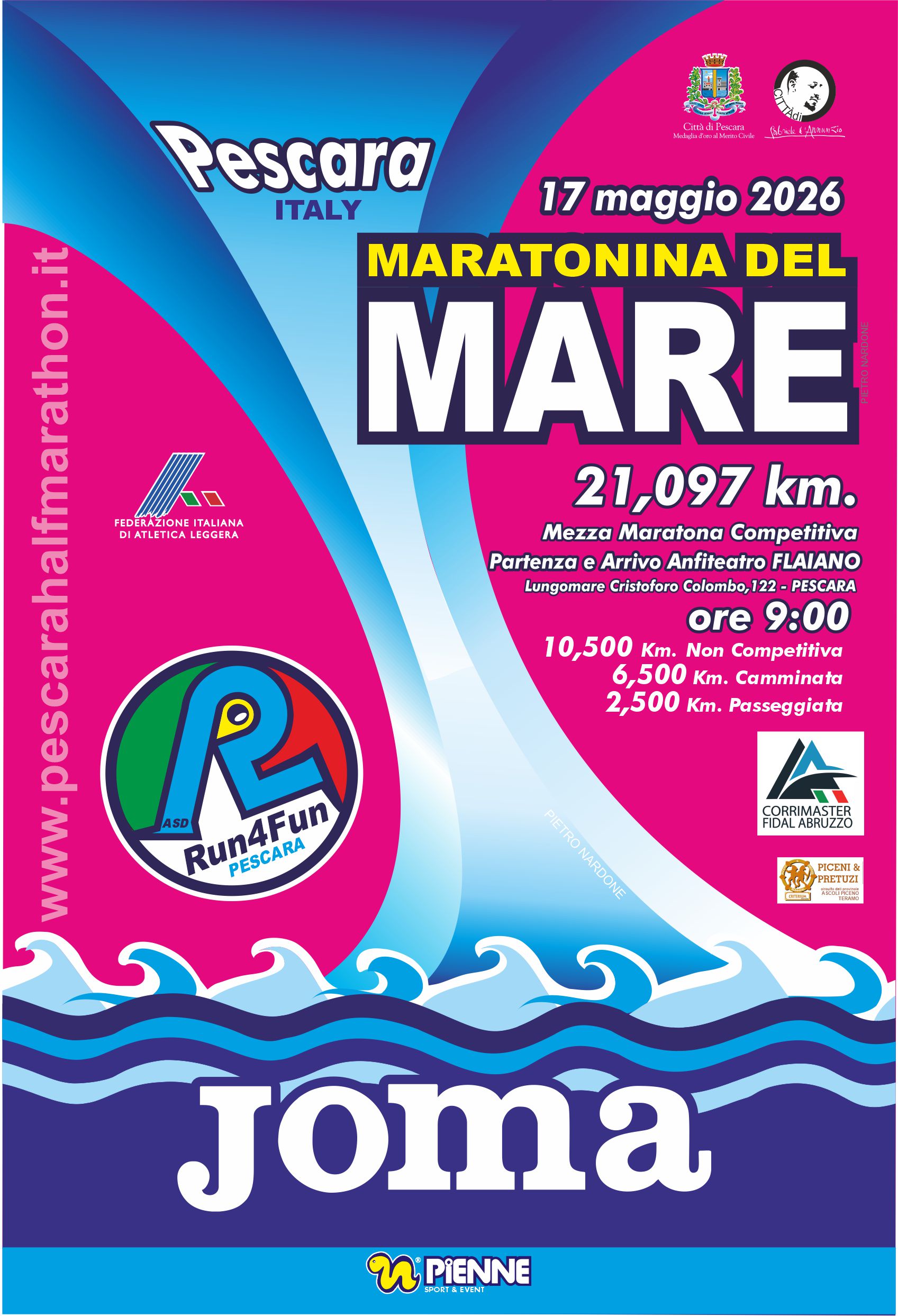 Descrizione: Competitiva di Km 21,097, non compet. di Km 10.5 e Km 6,5 e passeggiata di Km 2,5. Partenza ore 09:00 c/o Anfiteatro Flaiano