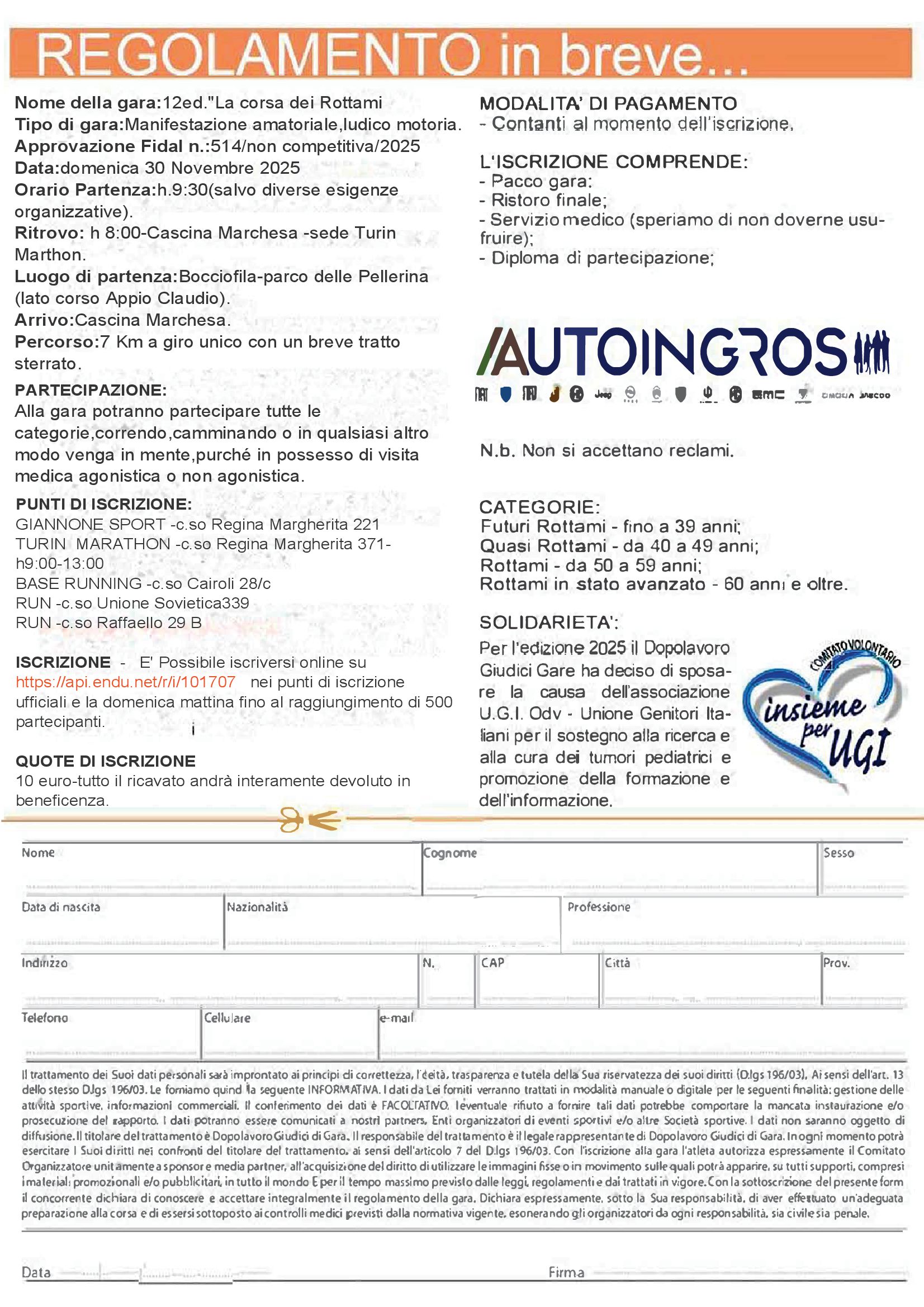 Descrizione: Ludico motoria di Km 7. Partenza ore 09:30 c/o la Bocciofila del Parco Carrara, di fianco ai Campi Sportivi del Parco della Pellerina