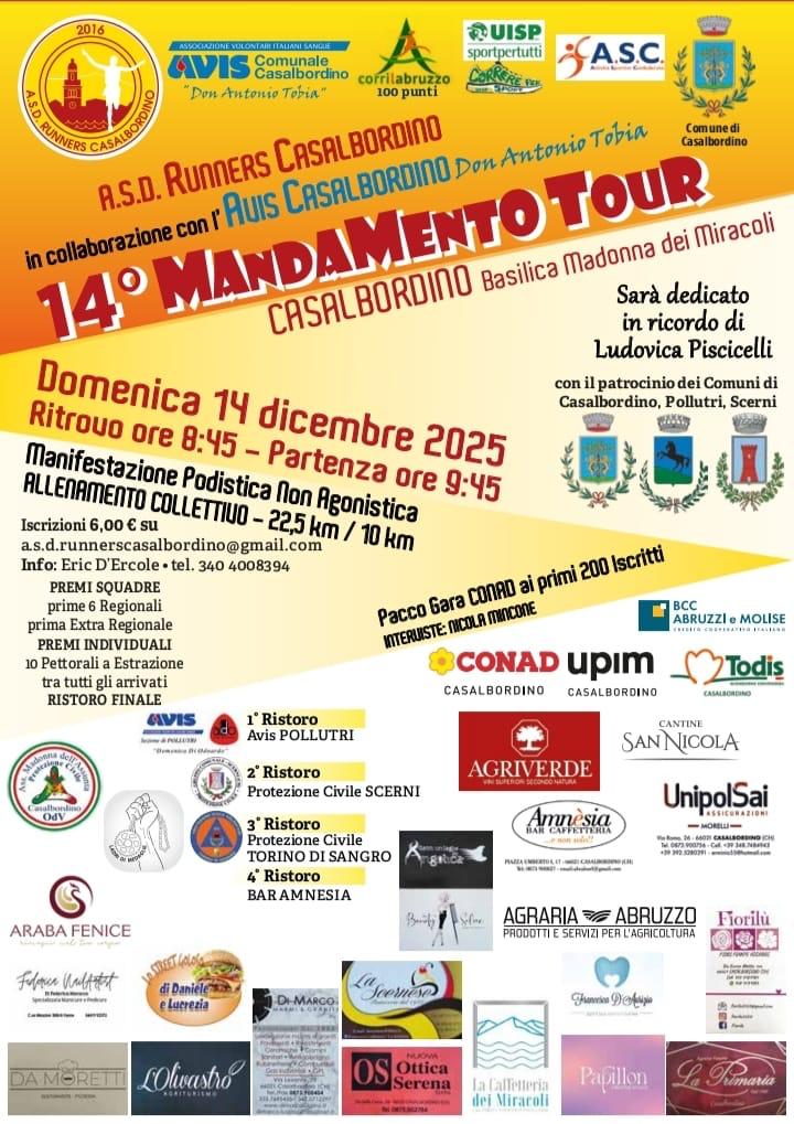 Descrizione: Non competitiva di Km 22,5 e Km 10. Partenza ore 09:45 c/o Basilica Madonna dei Miracoli
