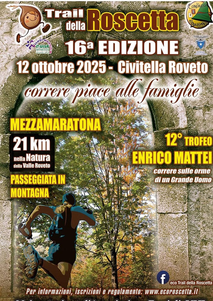 16′ Trail della Roscetta Data: 12/10/2025 🏆 🏅 Classifica: Clicca qui ⏰ Orario: 00:00📍 Indirizzo: civitella rovetoDescrizione: Km 21 Volantino / Regolamento