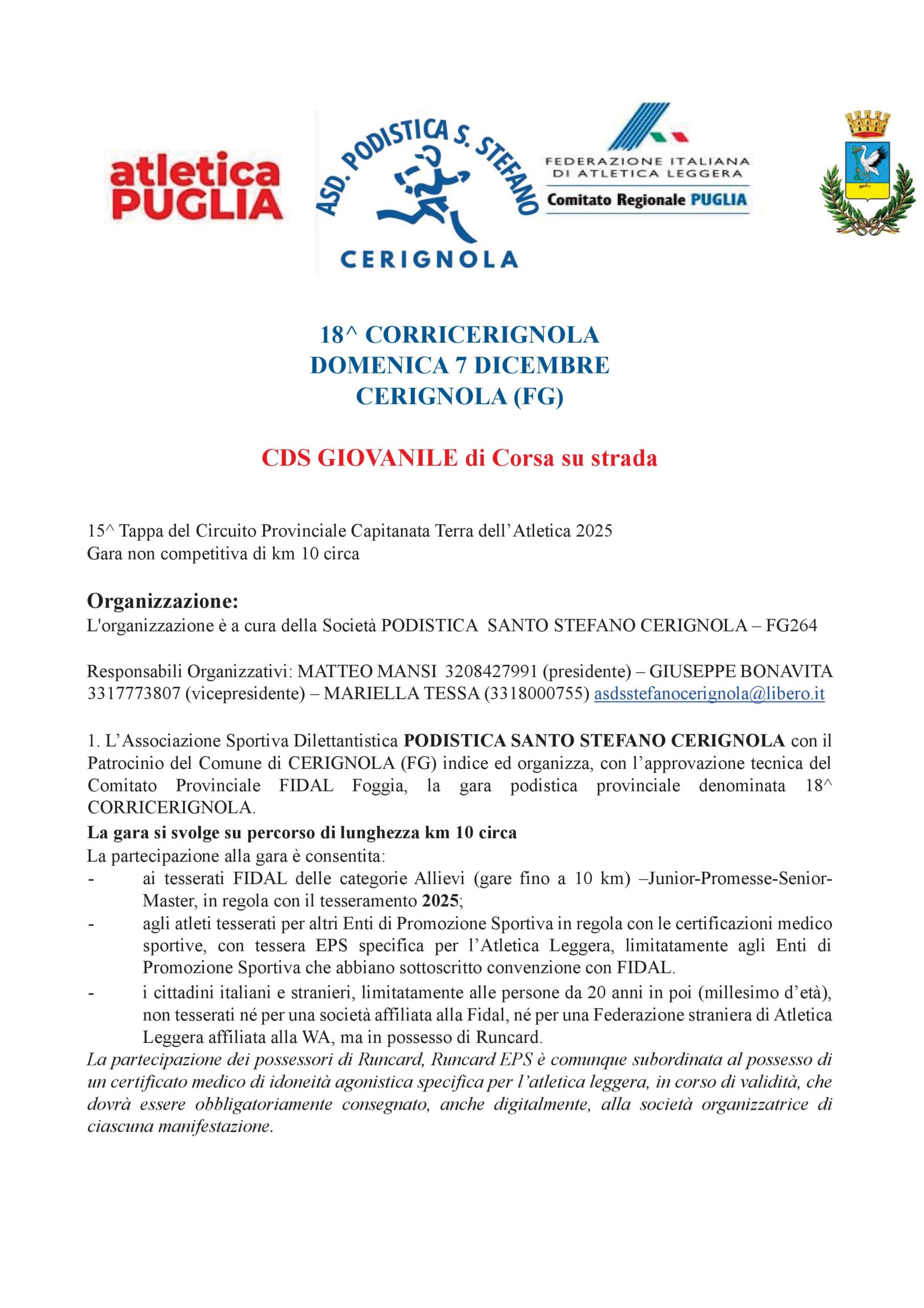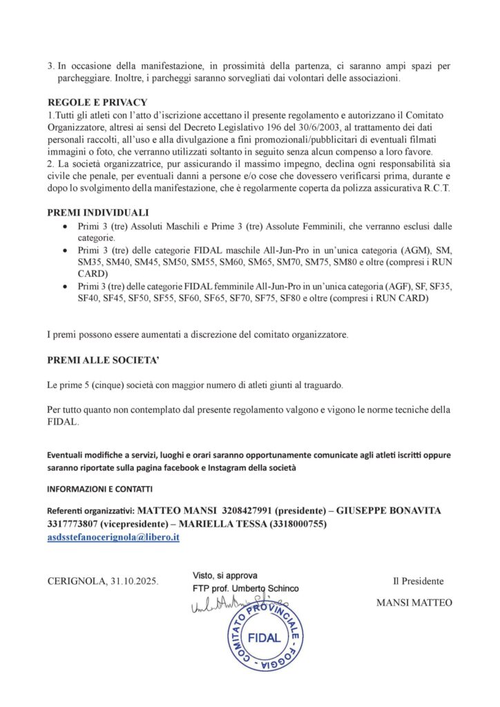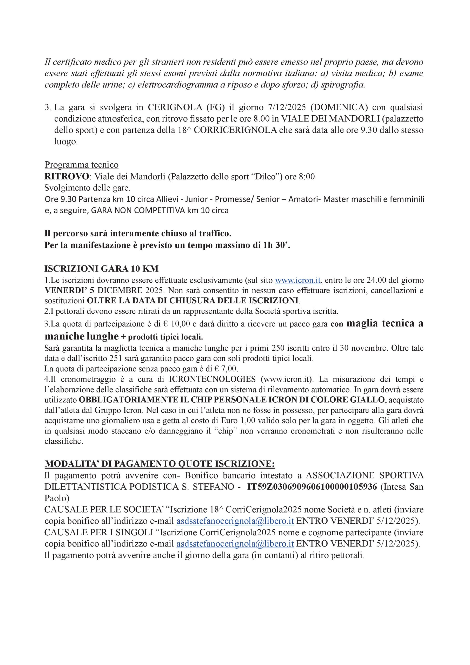 Descrizione: Competitiva di Km 10. Partenza ore 09:30 c/o il Palazzetto dello Sport, via dei Mandorli