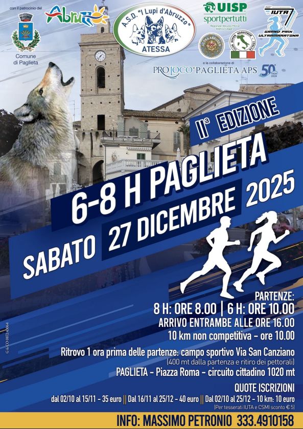 Descrizione: Competitiva di 8 o 6 ore e Km 10 su circuito di 1.020 metri. Partenza ore 08:00 (8 ore) e ore 10:00 (6 ore e Km 10) da Piazza Roma