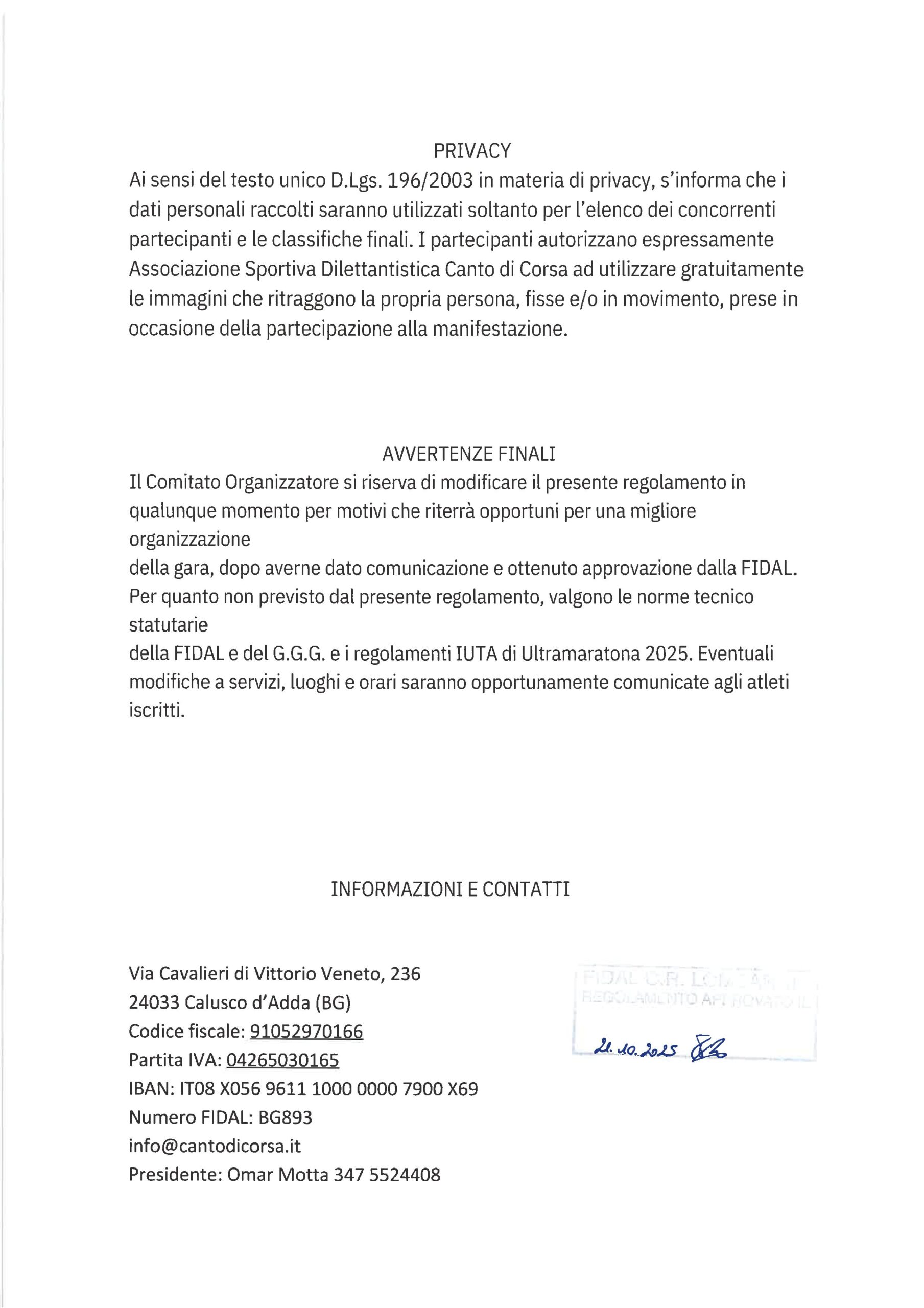 Affiliazione FIDAL 🏆