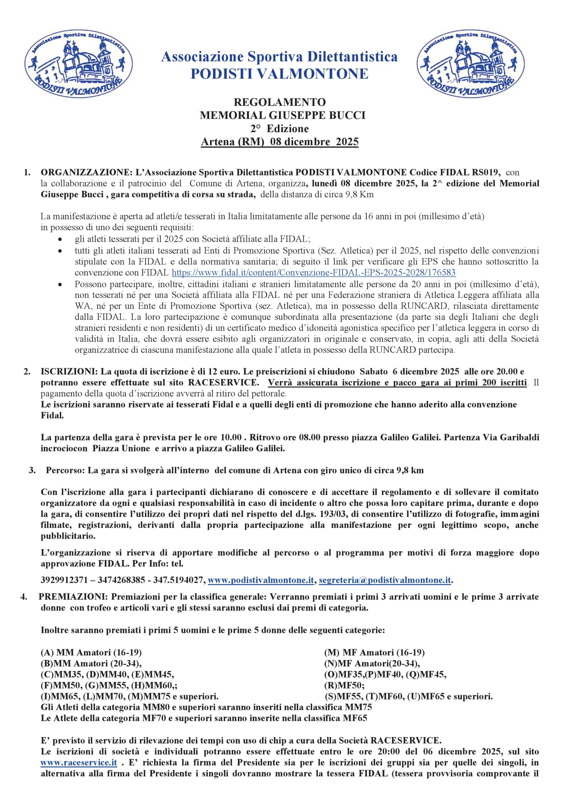 Descrizione: Competitiva di Km 9,8. Partenza ore 10:00 c/o Via Garibaldi incrocio con Piazza Unione