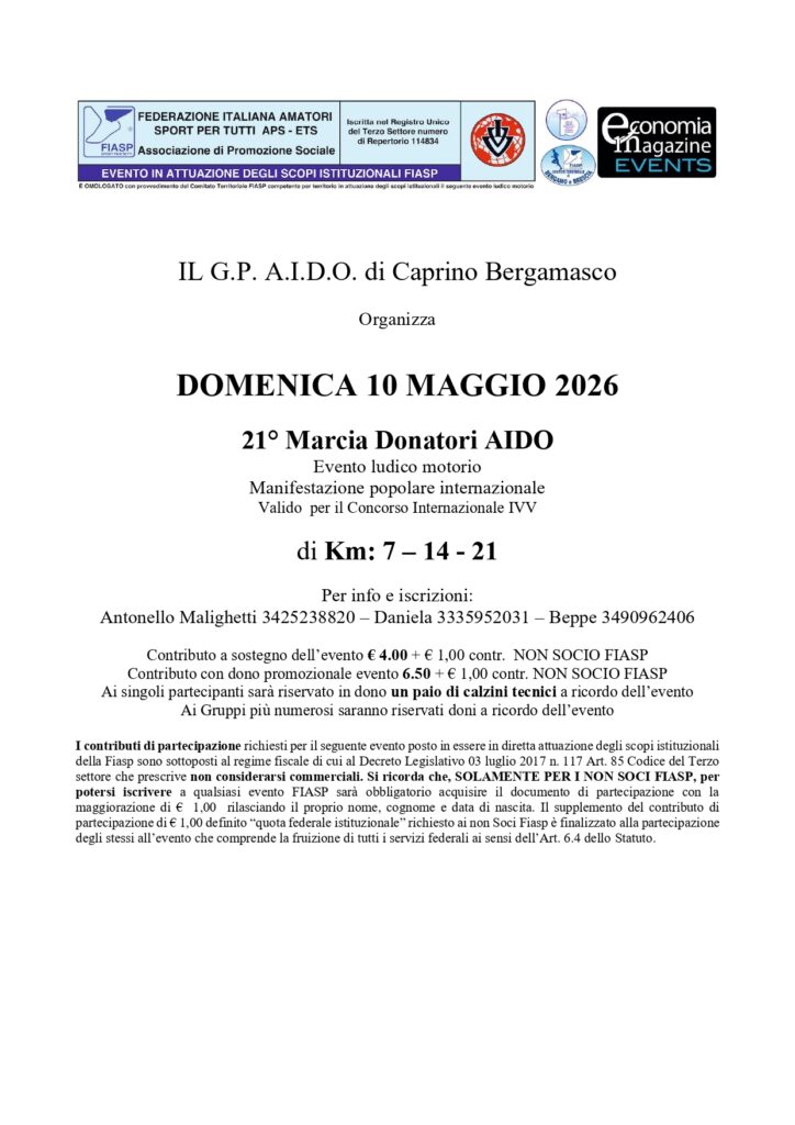 Descrizione: Ludico motoria di Km 21 - 14 - 7. Partenza ore 07:30/09:00 c/o il Campo Sportivo in via ai Giardini