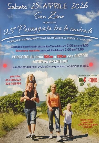 23° Passaggiate Tra le Contrade Data: 25/04/2026 Località: San Zeno di Arzignano (Vi) 📌 Luogo: Veneto / Vicenza⏰ Orario: dalle 7 alle 9,30📏 Distanza (max): 13 km📍 Indirizzo: San Zeno, Arzignano, Vicenza, Veneto, 36071, ItaliaDescrizione: Km 13 - Km 10 Volantino / Regolamento