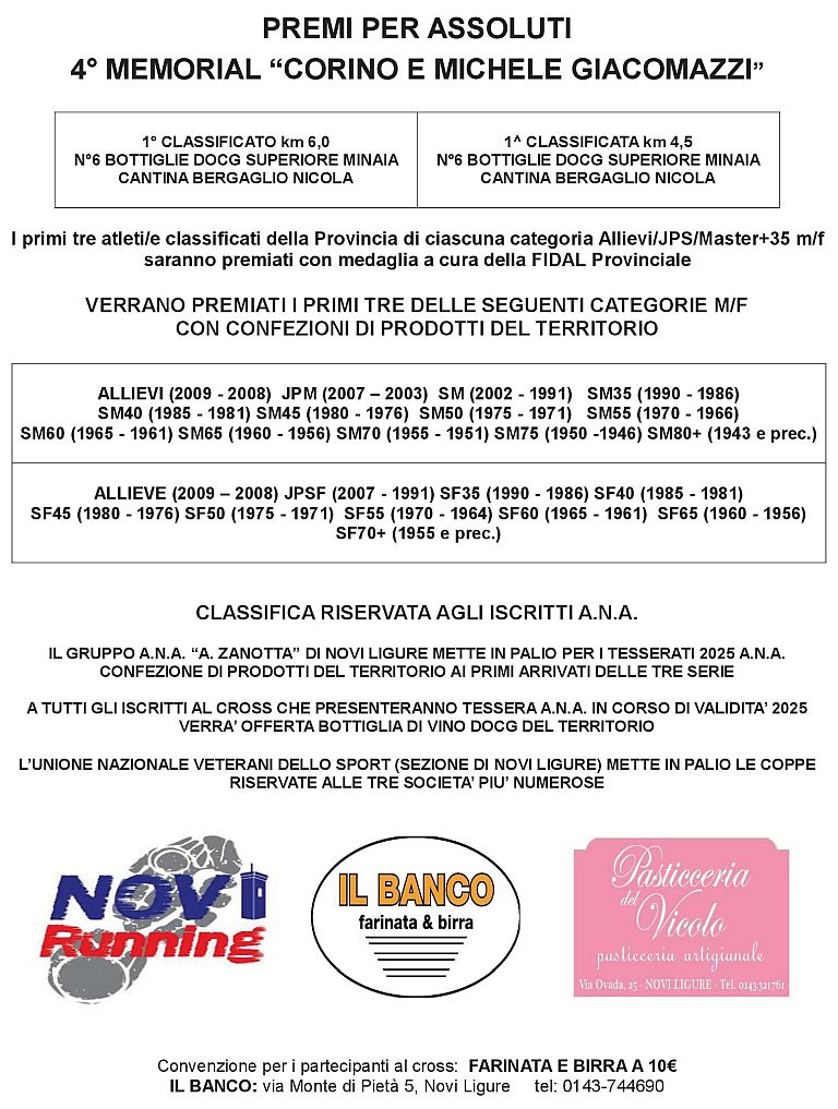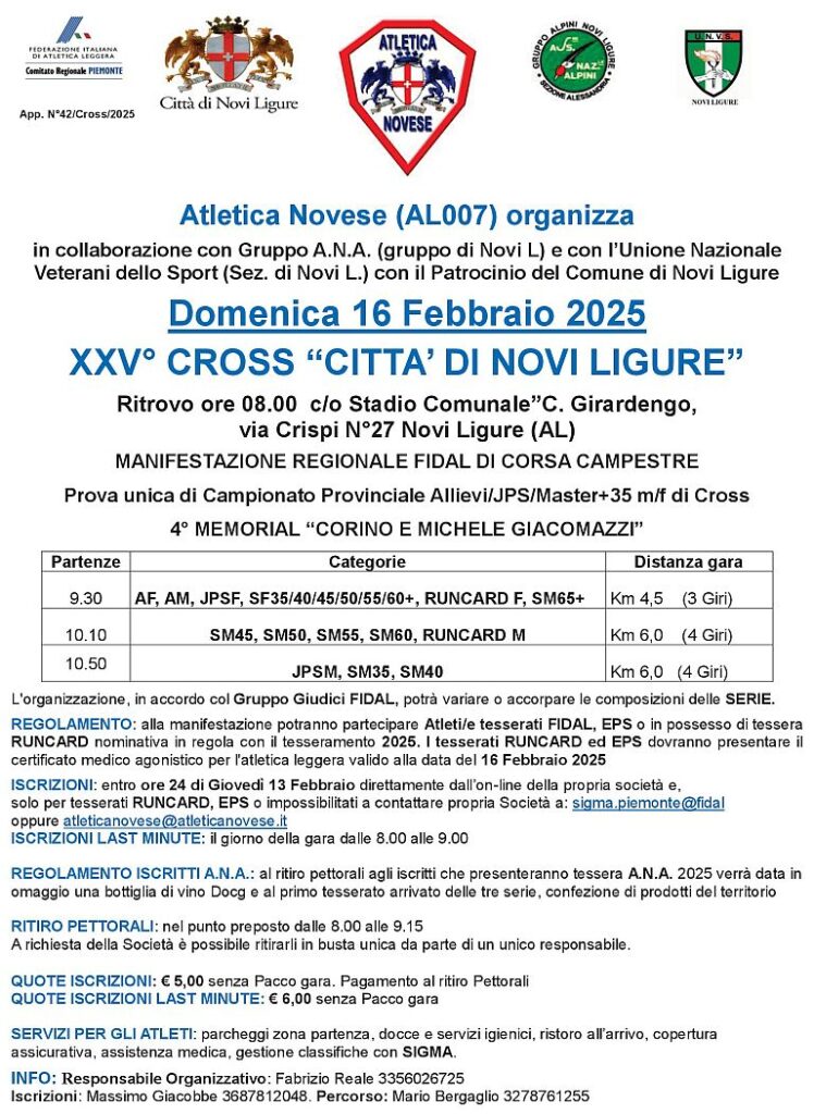 Descrizione: Cross di Km 6 e Km 4,5. Inizio gare ore 09:30 c/o lo Stadio Comunale C. Girardengo, via F. Crispi