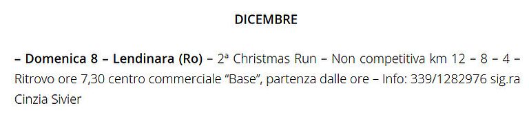 3° Christmas Run Data: 08/12/2025 Località: Lendinara (Ro) 📌 Luogo: Veneto / Rovigo📏 Distanza (max): 12 km📧 Email: teamspingerecycling@gmail.com📞 Telefono: 339.1282976Descrizione: Ludico motoria di Km 12 - 8 - 4. Partenza c/o Centro Commerciale Base, via Lorenzo Canozio 69 Volantino / Regolamento