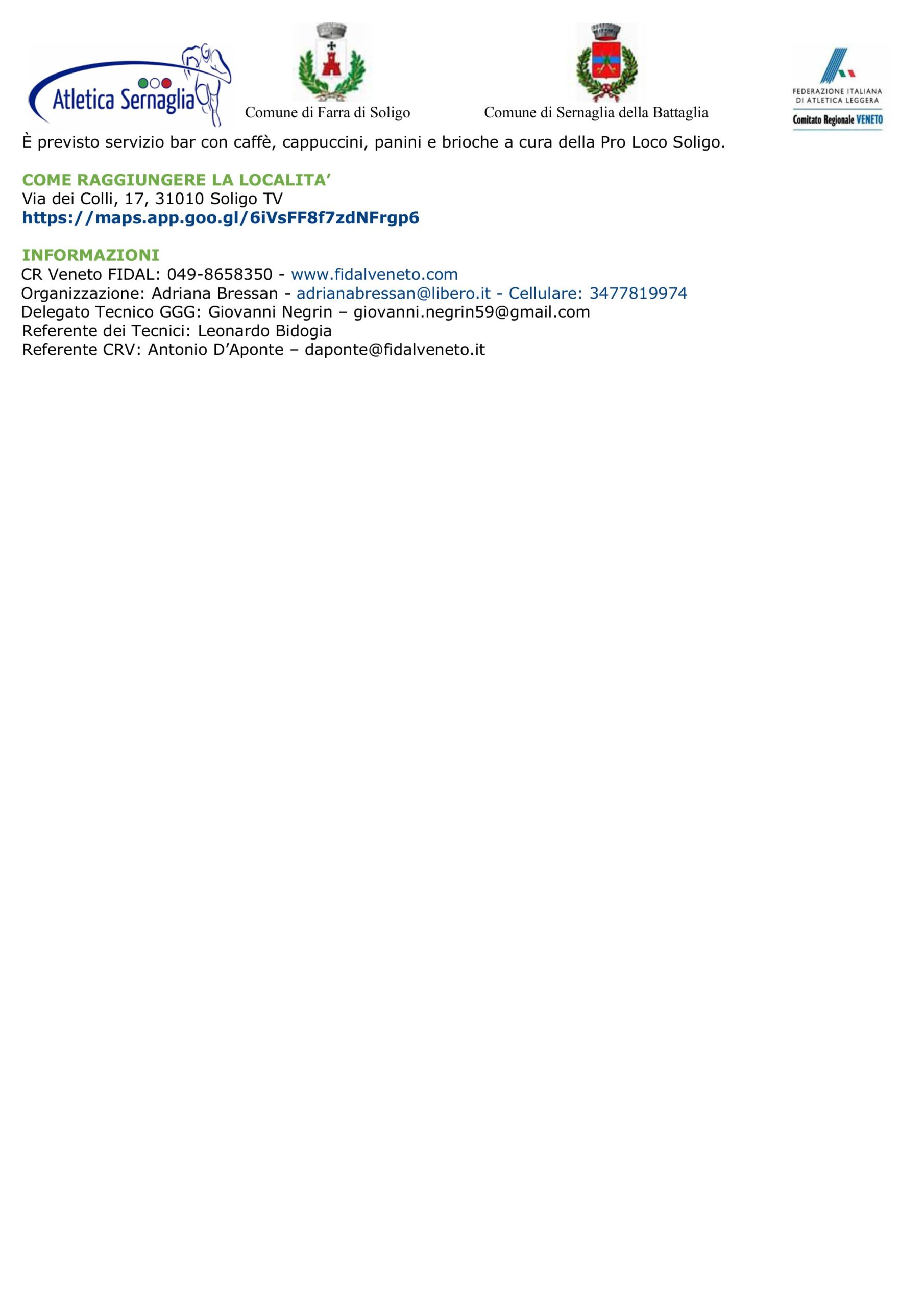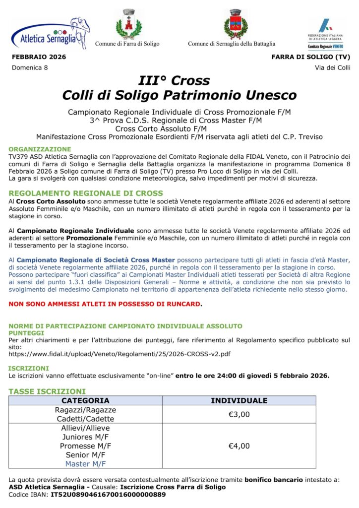 Descrizione: Cross su varie distanze. Inizio gare ore 09:45 c/o l'area Pro Loco di Soligo