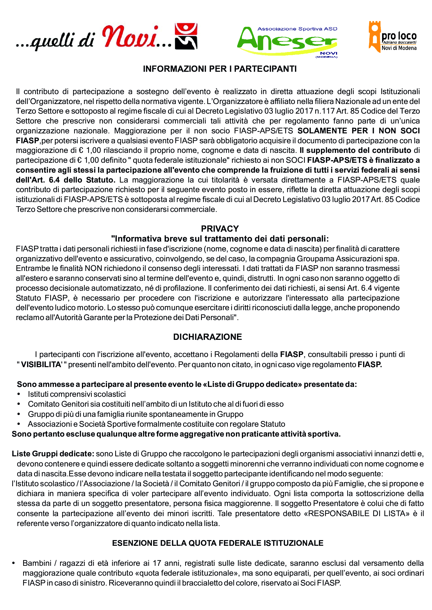Descrizione: Ludico motoria di Km 12 - 9 - 6. Partenza ore 09:00/09:30 c/o il Centro Sportivo I Campetti, via Raffello Sanzio 34