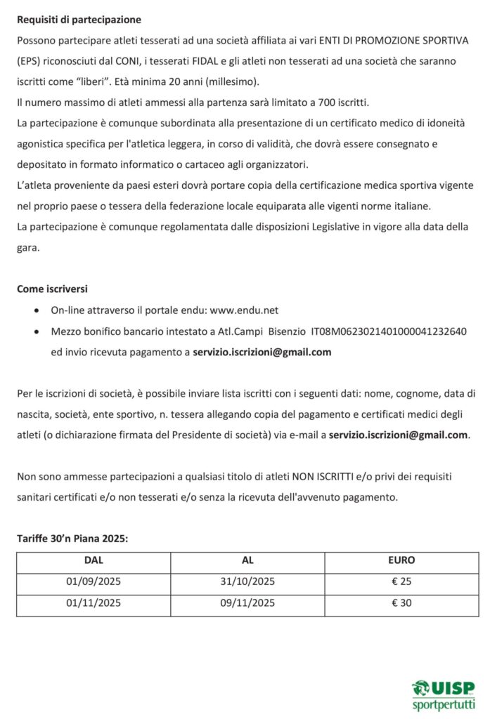 Descrizione: Competitiva di Km 30. Partenza ore 08:30 c/o Piazza Dante