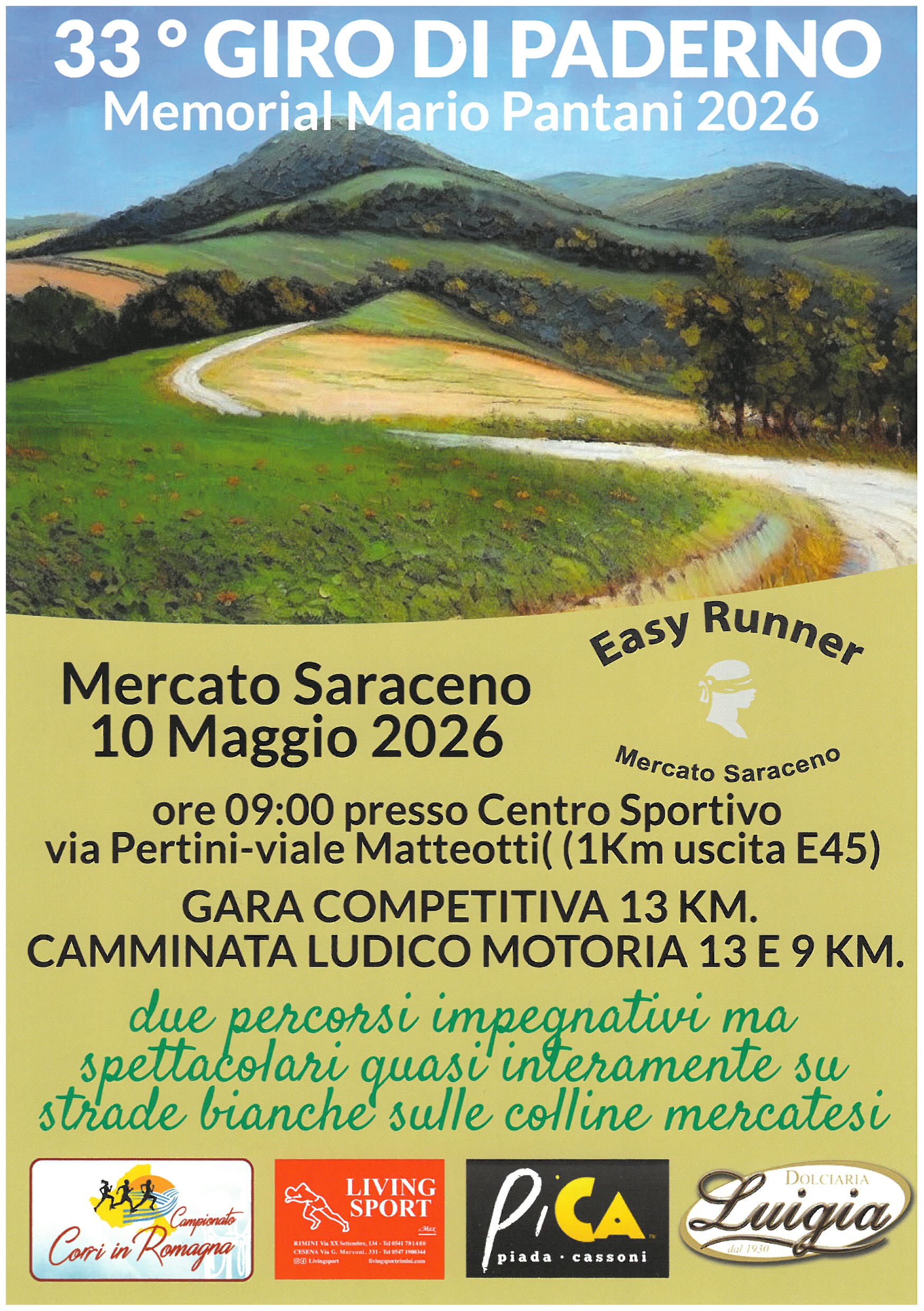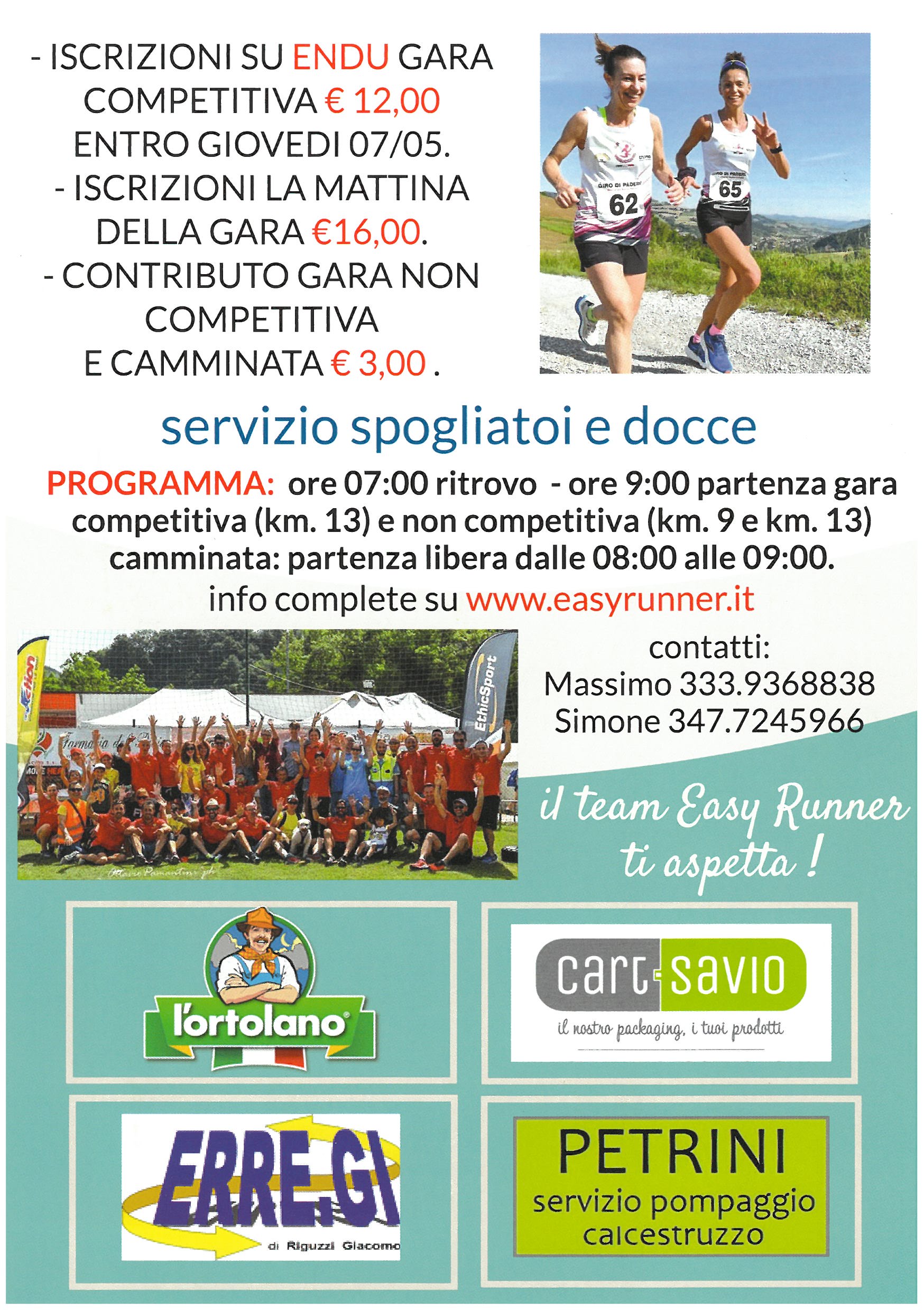 Descrizione: camminate ludico motorie di 9 e 13 km, gara competitiva di 13 km