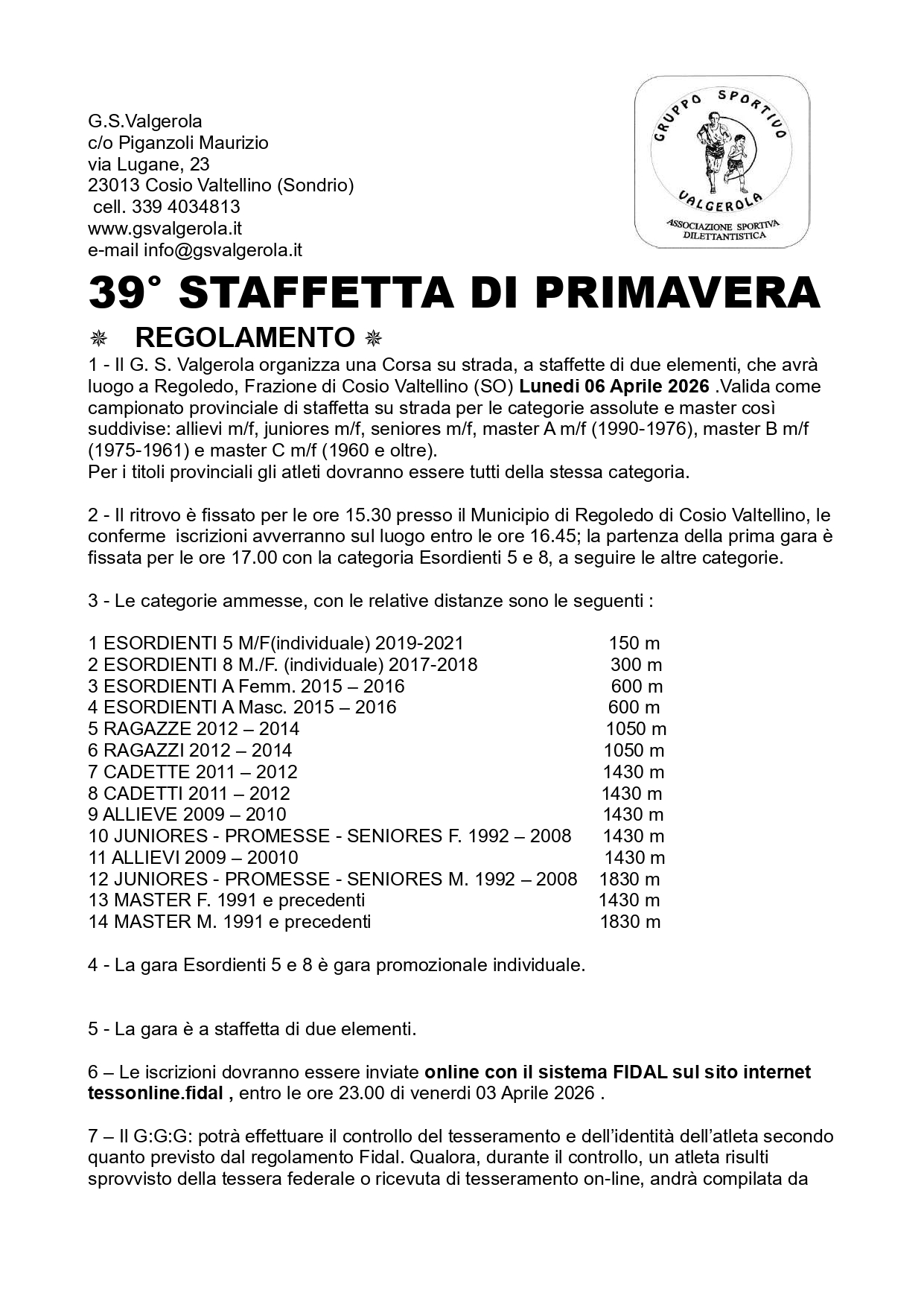 Affiliazione FIDAL 🏆