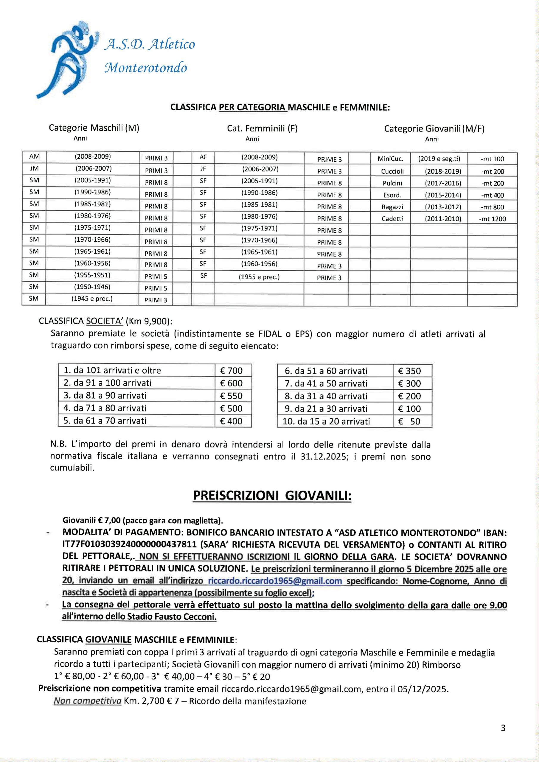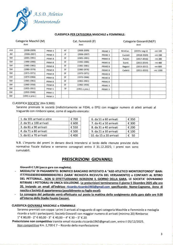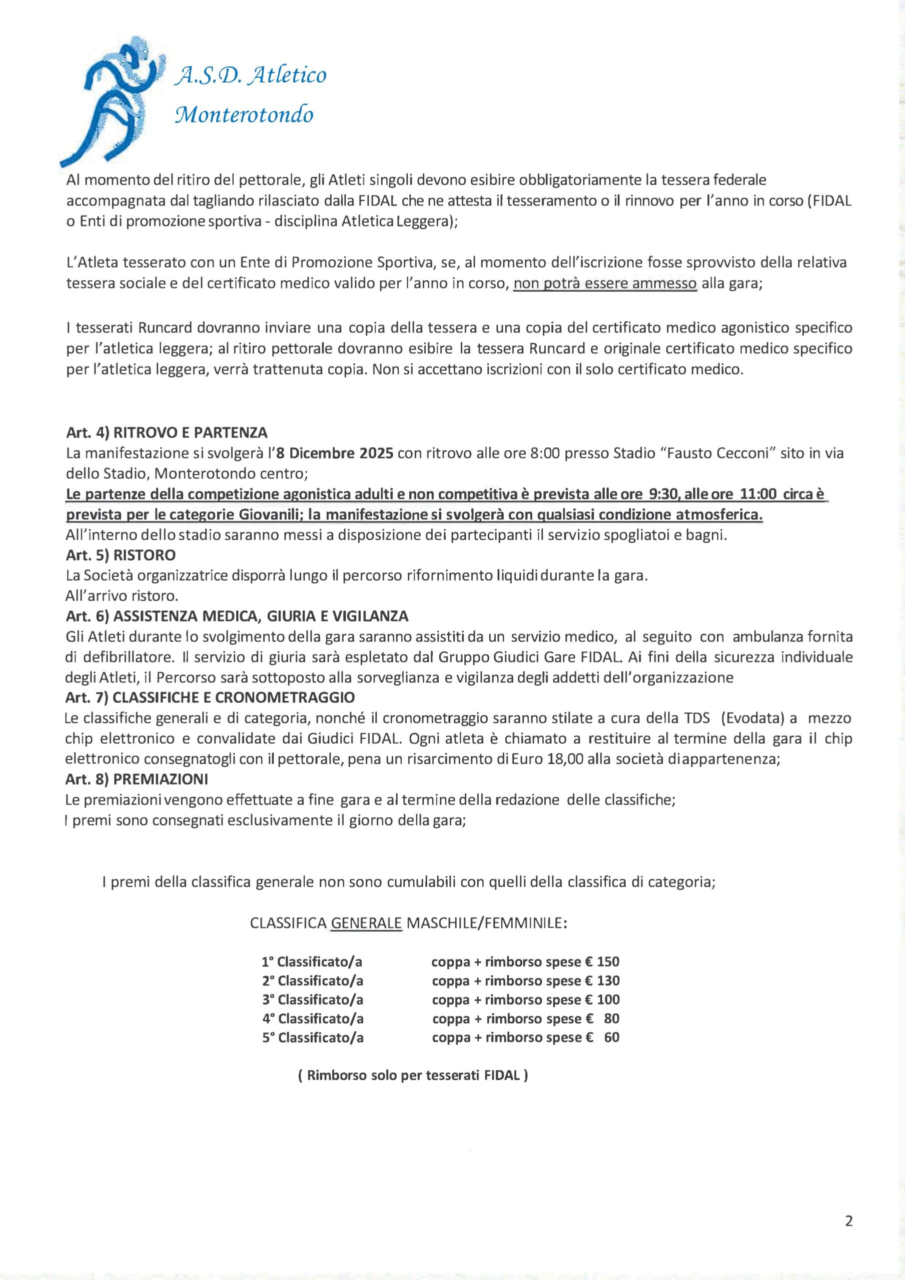 Descrizione: Competitiva e non di Km 9,9. Partenza ore 09:30 (giovanili ore 11:00) c/o Stadio Fausto Cecconi, via dello Stadio