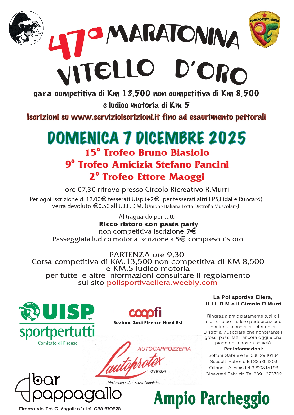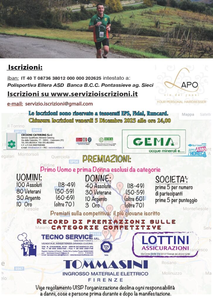 Descrizione: Competitiva di Km 13,5, non compet. di Km 8,5 e ludico motoria di Km 5. Partenza ore 09:30 c/o Circolo R. Murri