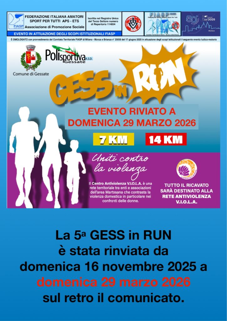 Descrizione: Ludico motoria di Km 14 e Km 7. Partenza ore 07:30/10:00 presso Villa Daccò, via Badia 44