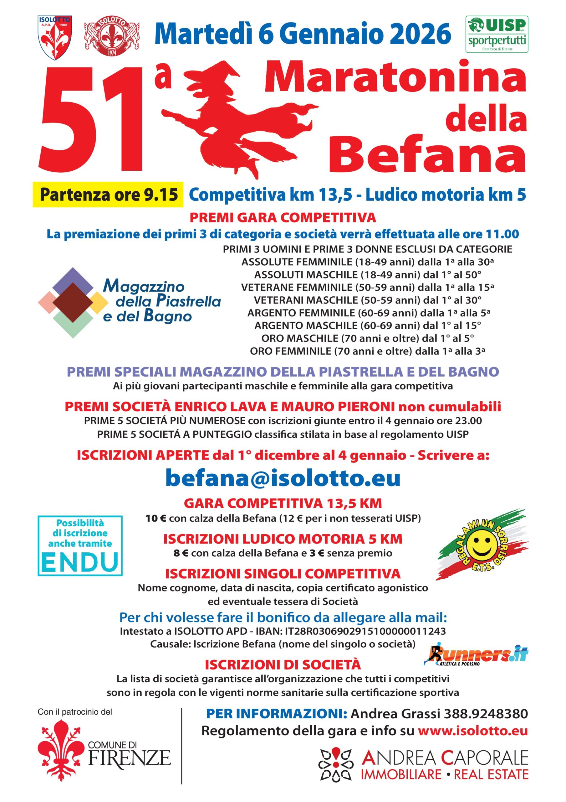 Descrizione: Competitiva di Km 13,5 e ludico motoria di Km 5. Partenza ore 09:15 da via Pio Fedi 7