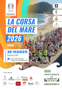 6° Corsa del Mare – Km 9,900 Data: 29/03/2026 Località: Castellabate (Sa) 📌 Luogo: Campania / Salerno📏 Distanza (max): 9.9 km🔗 Sito: www.cilentodicorsa.it📧 Email: asd.castellabaterunners@gmail.com📞 Telefono: 338.5835947Descrizione: Competitiva di Km 9,9 e non compet. di Km 4. Partenza ore 09:00 c/o il Lungomare Bracale, Santa Maria