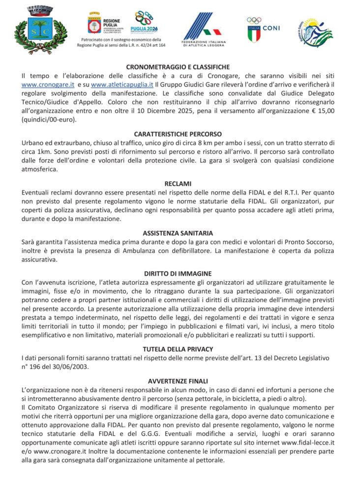 Descrizione: Competitiva di Km 8. Partenza ore 09:00 c/o la Villa Comunale