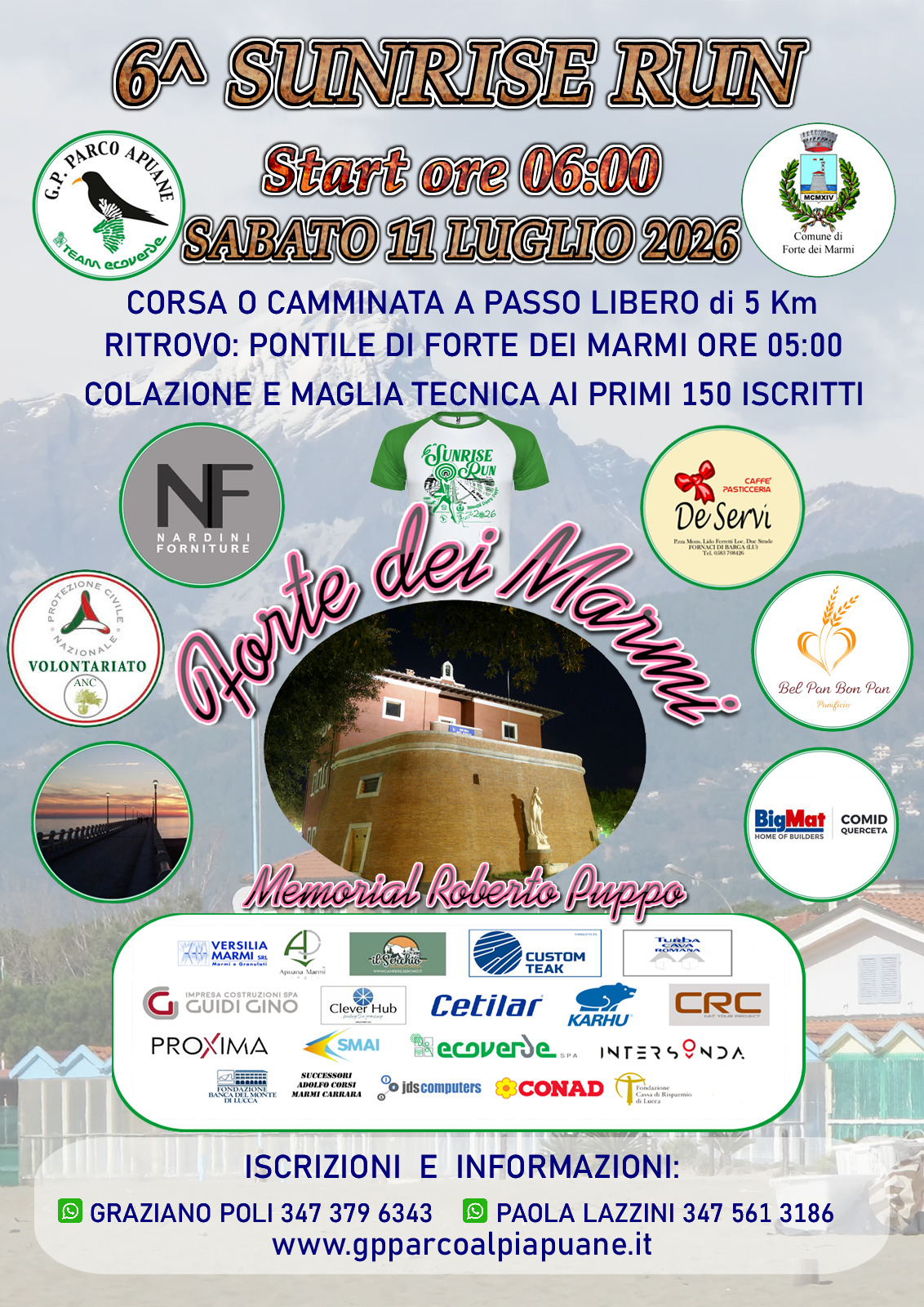 Descrizione: Ludico motoria di Km 5. Partenza ore 06:00 c/o il Pontile di Forte Dei Marmi