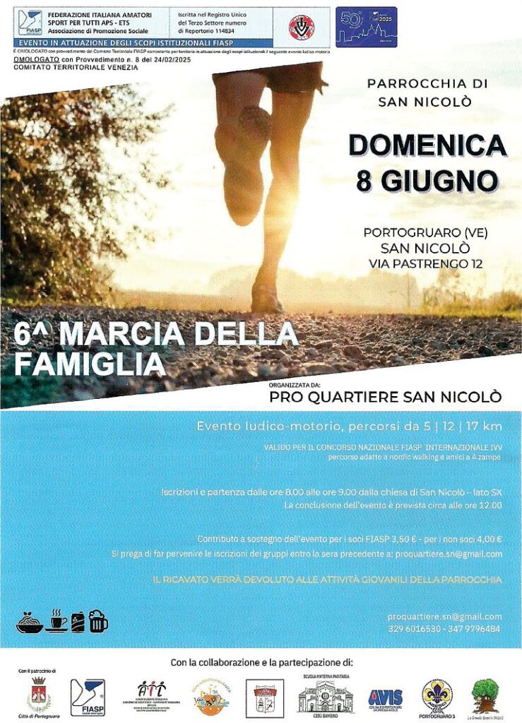 Descrizione: Ludico motoria di Km 18 - 12 - 4. Partenza ore 08:00/09:00 c/o l'area festeggiamenti di San Nicolò di Portogruaro (dietro la Chiesa)