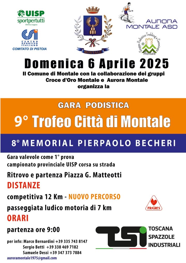 9^ Trofeo Citta’ di Montale Data: 06/04/2025 Località: Pistoia (PT) 🏆 🏅 Classifica: Clicca qui 📌 Luogo: Toscana / Pistoia⏰ Orario: 09:00📍 Indirizzo: Piazza Matteotti Montale Volantino / Regolamento