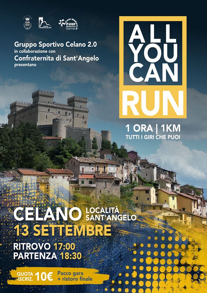 All You Can Run For 1 Hour Data: 13/09/2025 🏆 🏅 Classifica: Clicca qui ⏰ Orario: 00:00📍 Indirizzo: Celano📧 Email: info@grupposportivocelano.it📞 Telefono: 320.5727309Descrizione: 1 ora di corsa Volantino / Regolamento