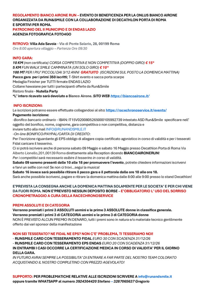 Descrizione: Km 10 competitiva e non - Camminata di Km 5