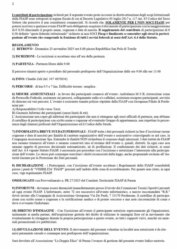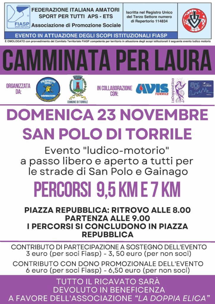 ANNULLATA – Camminata per Laura Data: 23/11/2025 Località: San Polo - Torrile (Pr) 📌 Luogo: Emilia-Romagna / Parma⏰ Orario: 09:00📏 Distanza (max): 9.5 kmDescrizione: Ludico motoria di Km 9,5 e Km 7. Partenza ore 09:00 da Piazza Repubblica Volantino / Regolamento