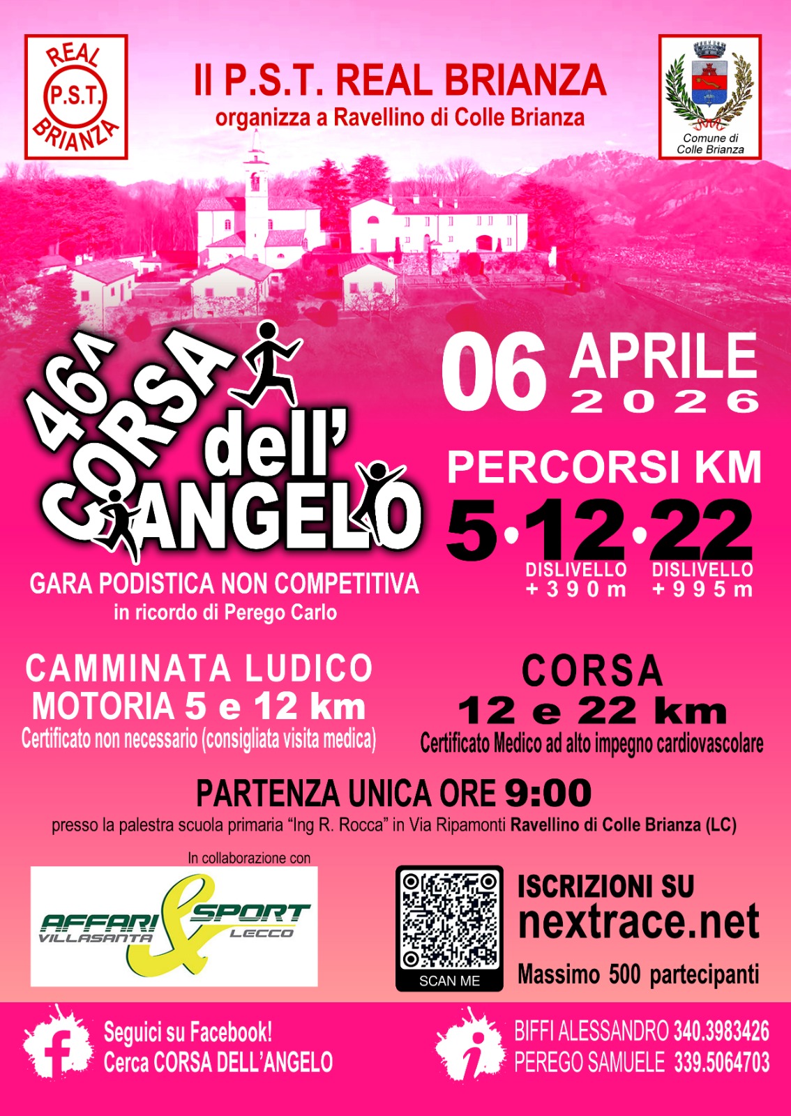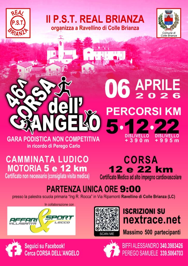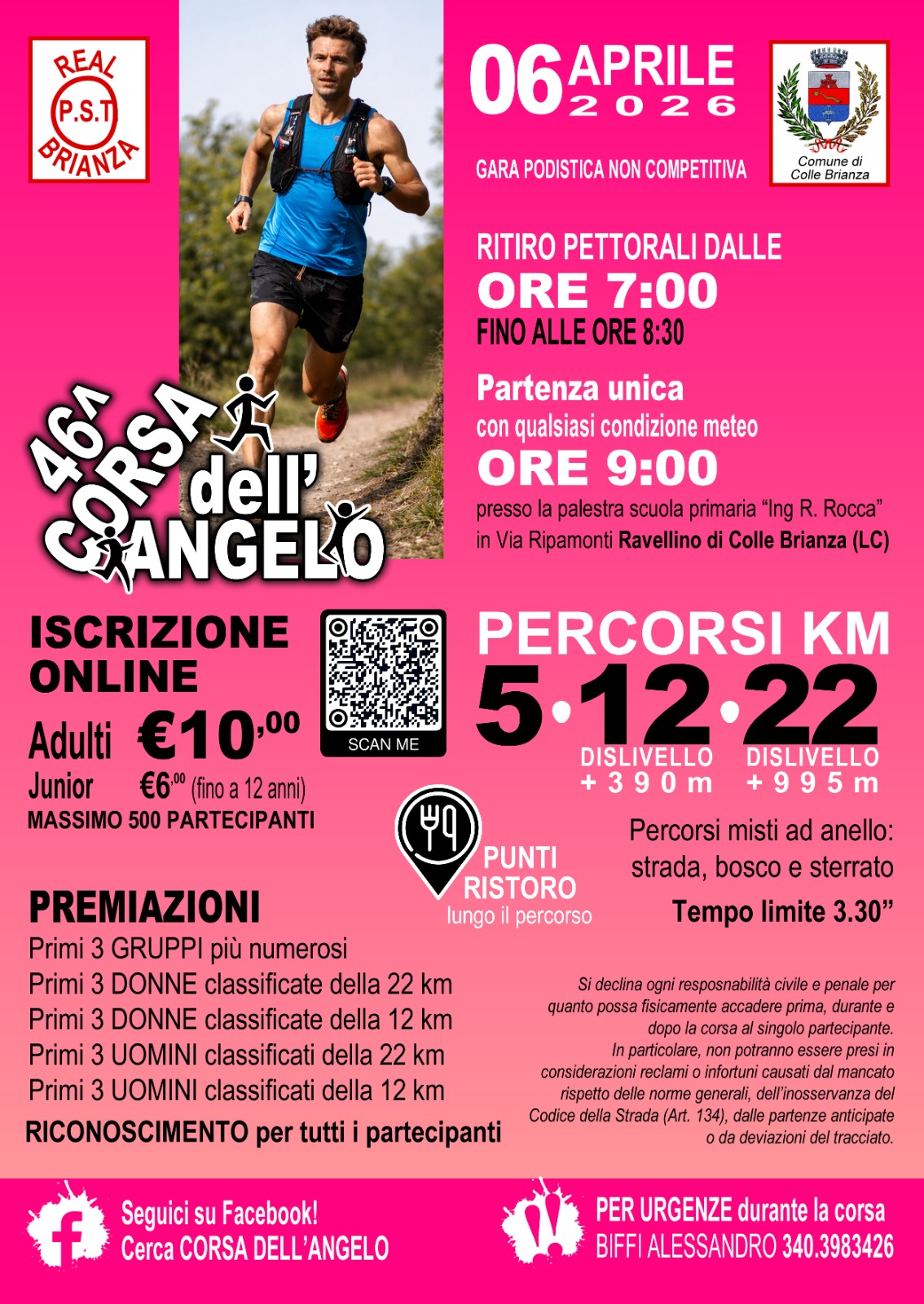 Descrizione: Gara podistica non competitiva che si terra Lunedi 6 Aprile a Colle Brianza. Si potrà scegliere tra 2 percorsi da 12 e 22 km, entrambi i percorsi sono ad anello e si sviluppano per buona parte sui sentieri boschivi del monte di Brianza.