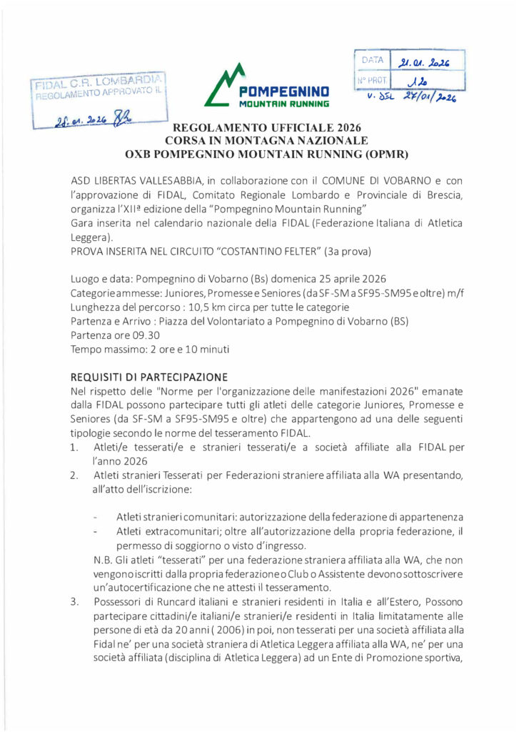 Corsa in Montagna Nazionale Oxb Pompegnino Mountain Running