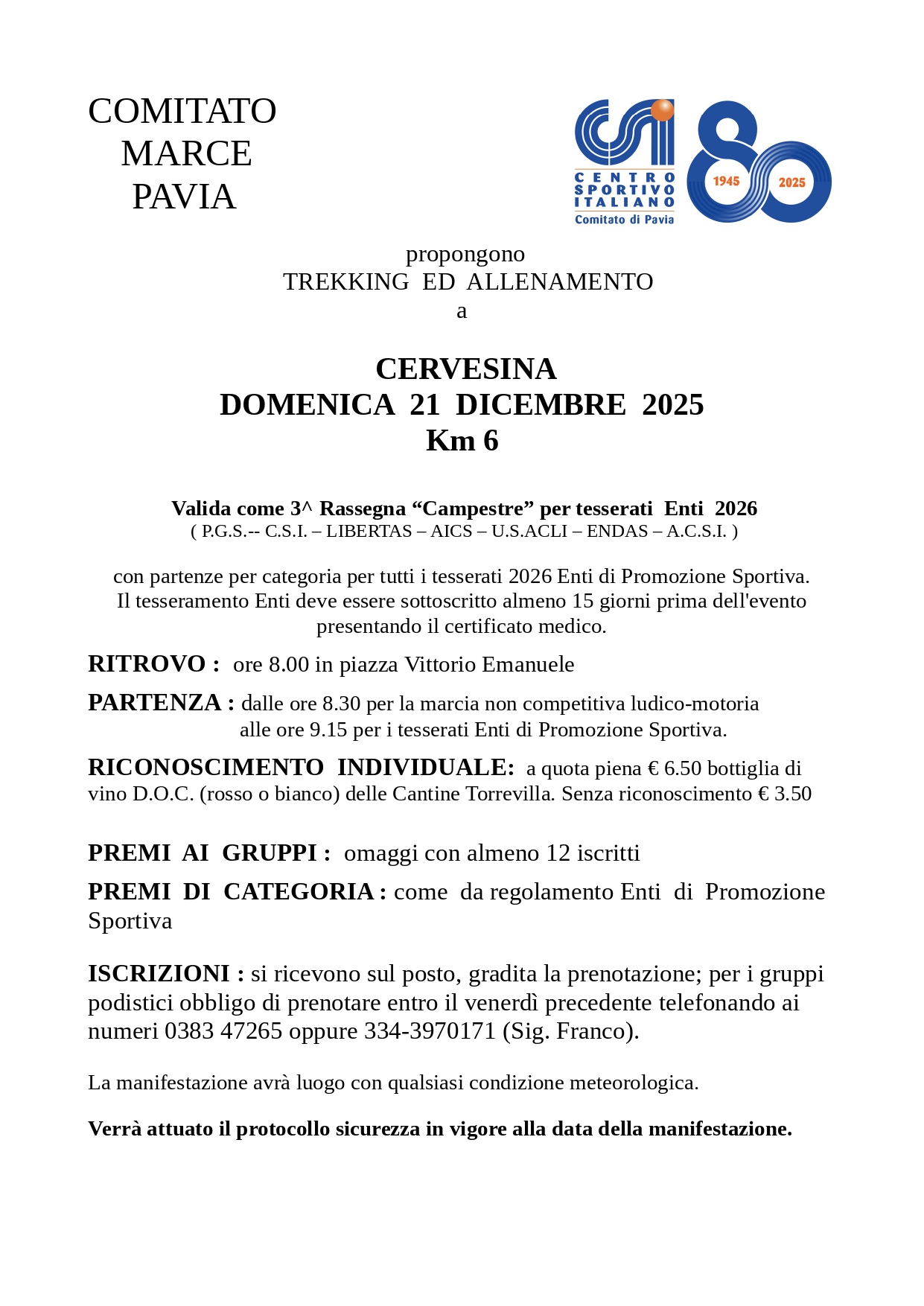 Descrizione: Competitiva e ludico motoria di Km 6. Partenza ore 09:15 (ludico motoria ore 08:30) da Piazza Vittorio Emanuele II
