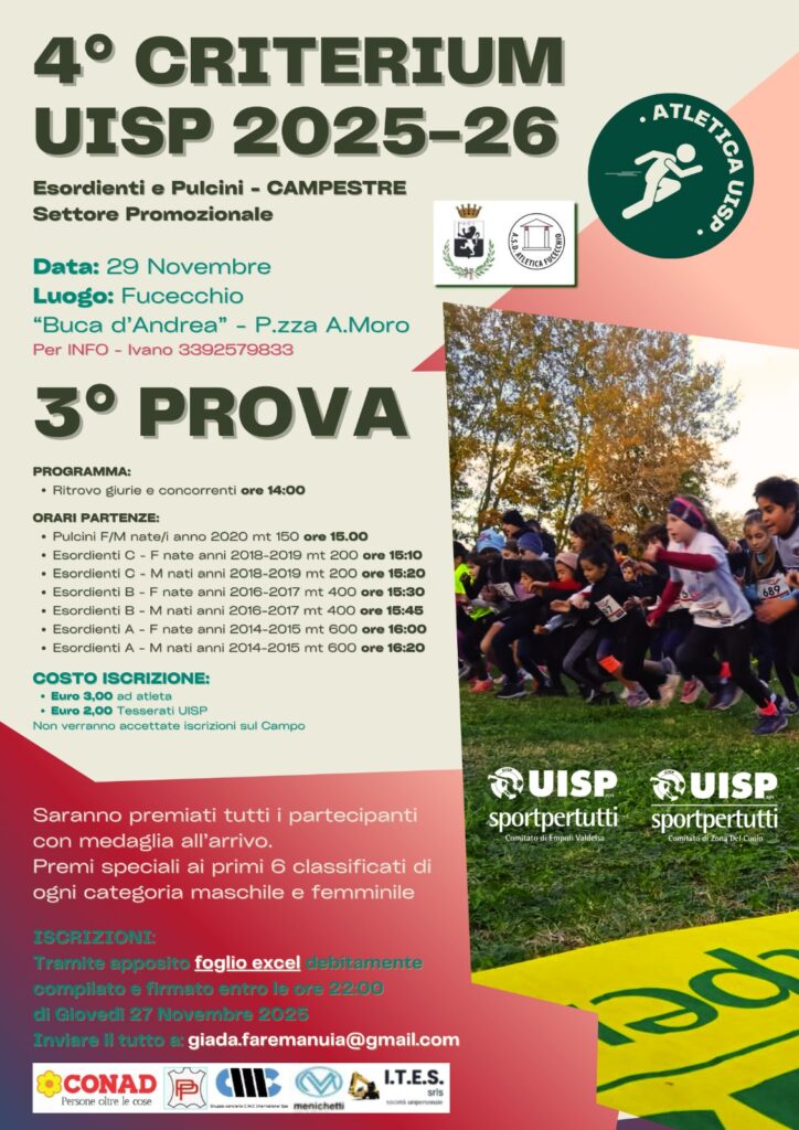 Descrizione: Campestre riservata alle categorie promozionali. Inizio gare ore 15:10 c/o la Buca d'Andrea