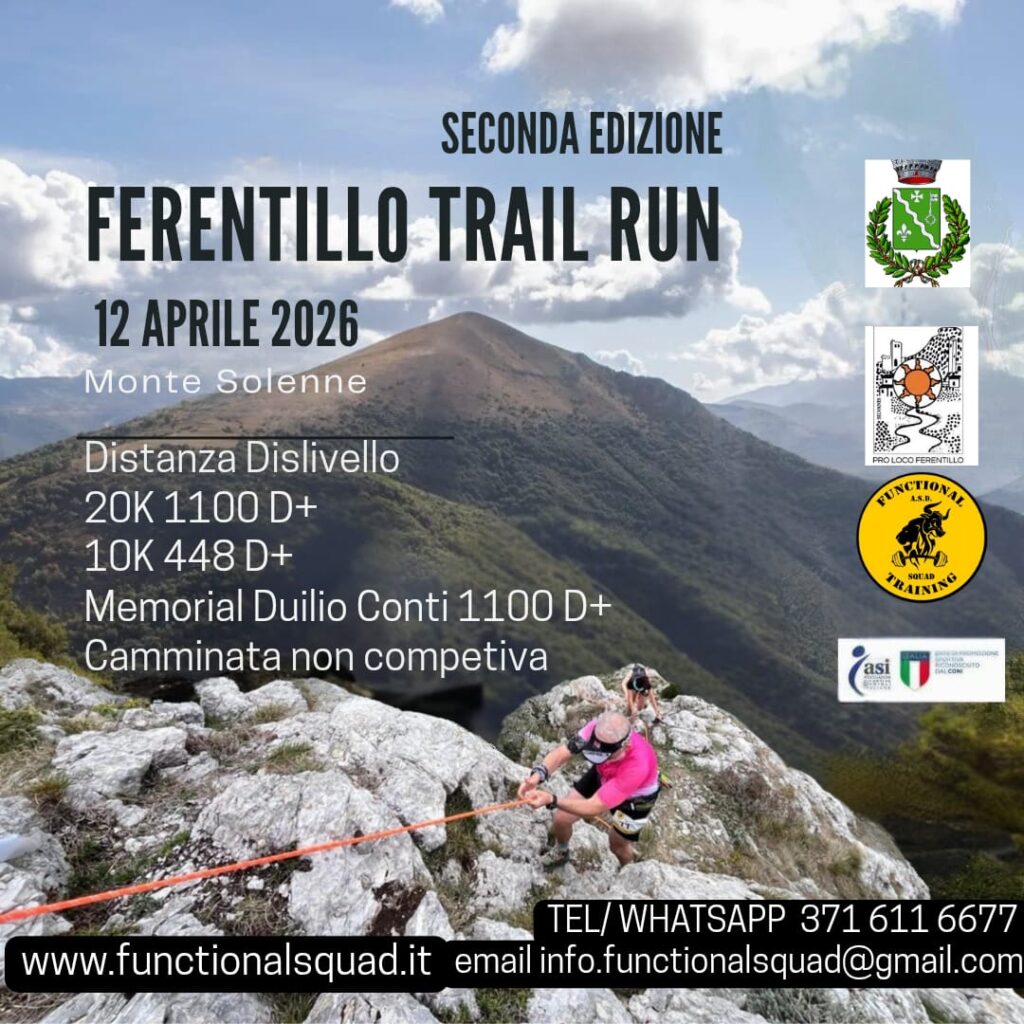 Ferentillo Trail Run Data: 12/04/2026 Località: Ferentillo (Tr) 🏆 📌 Luogo: Umbria / Terni📏 Distanza (max): 20 km📍 Indirizzo: Ferentillo, Terni, Umbria, 05034, Italia🔗 Sito: https://www.functionalsquad.it/📧 Email: info.functionalsquad@gmail.com📞 Telefono: 393716116677Descrizione: Km 20 + D1100 Km 10 + D448 Volantino / Regolamento
