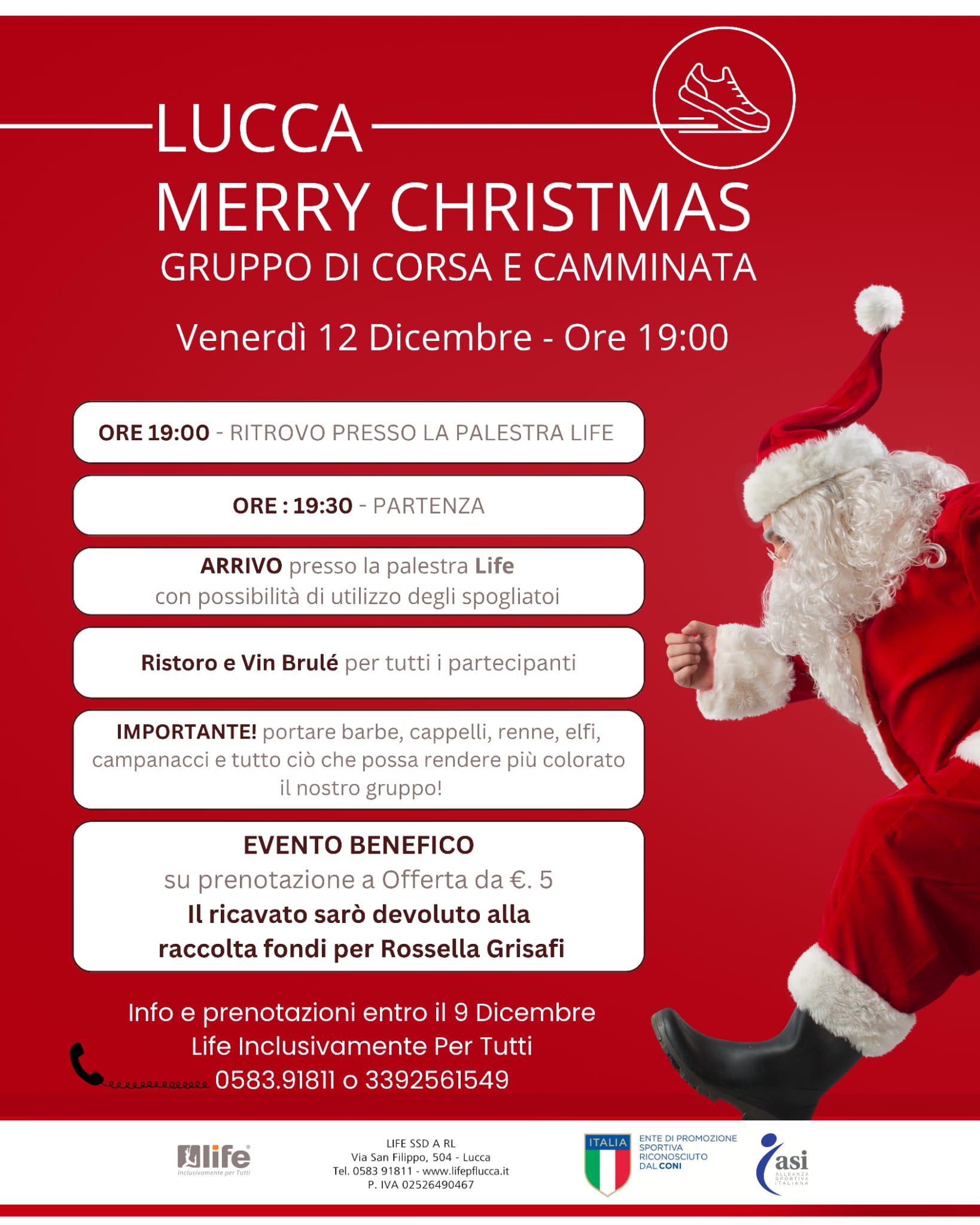 Descrizione: Ludico motoria di Km 10. Partenza ore 19:30 c/o Palestra Life