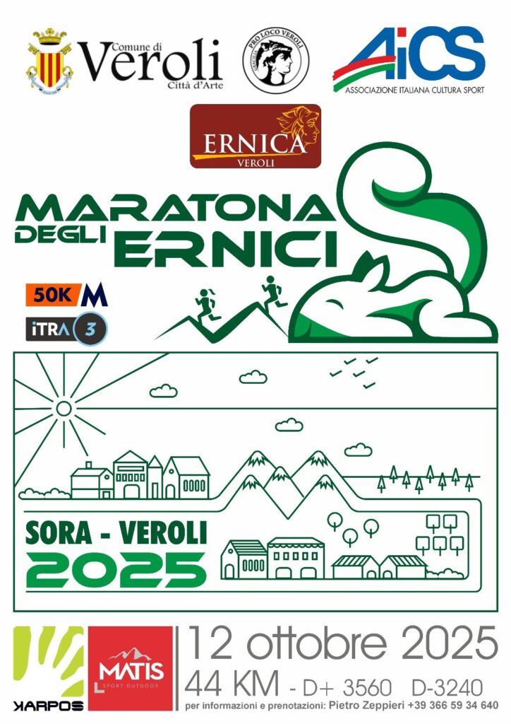 Maratona degli Ernici Data: 12/10/2025 Località: Frosinone (FR) 🏆 🏅 Classifica: Clicca qui 📌 Luogo: Lazio / Frosinone⏰ Orario: 00:00📍 Indirizzo: sora📧 Email: ernicaveroli@gmail.com📞 Telefono: 366.5934640 Descrizione: Km 44 + 3500 m D Volantino / Regolamento