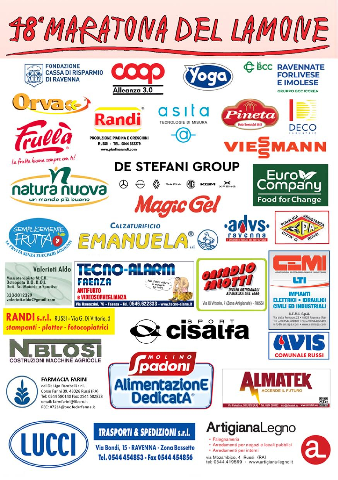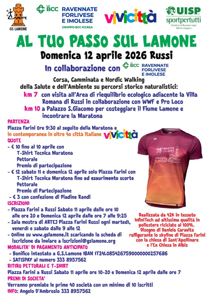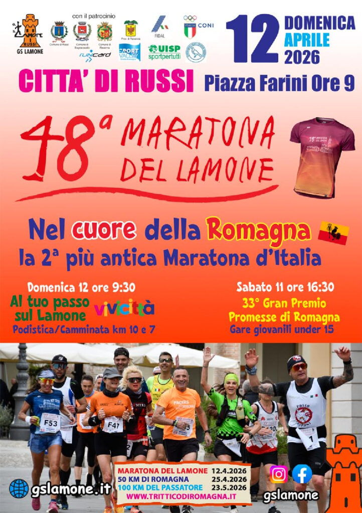 Descrizione: Maratona di Km 42,195 e ludico motoria di Km 10 e Km 7. Partenza ore 09:00 (Km 42) e ore 09:15 (Km 10 e Km 7) da piazza Farini