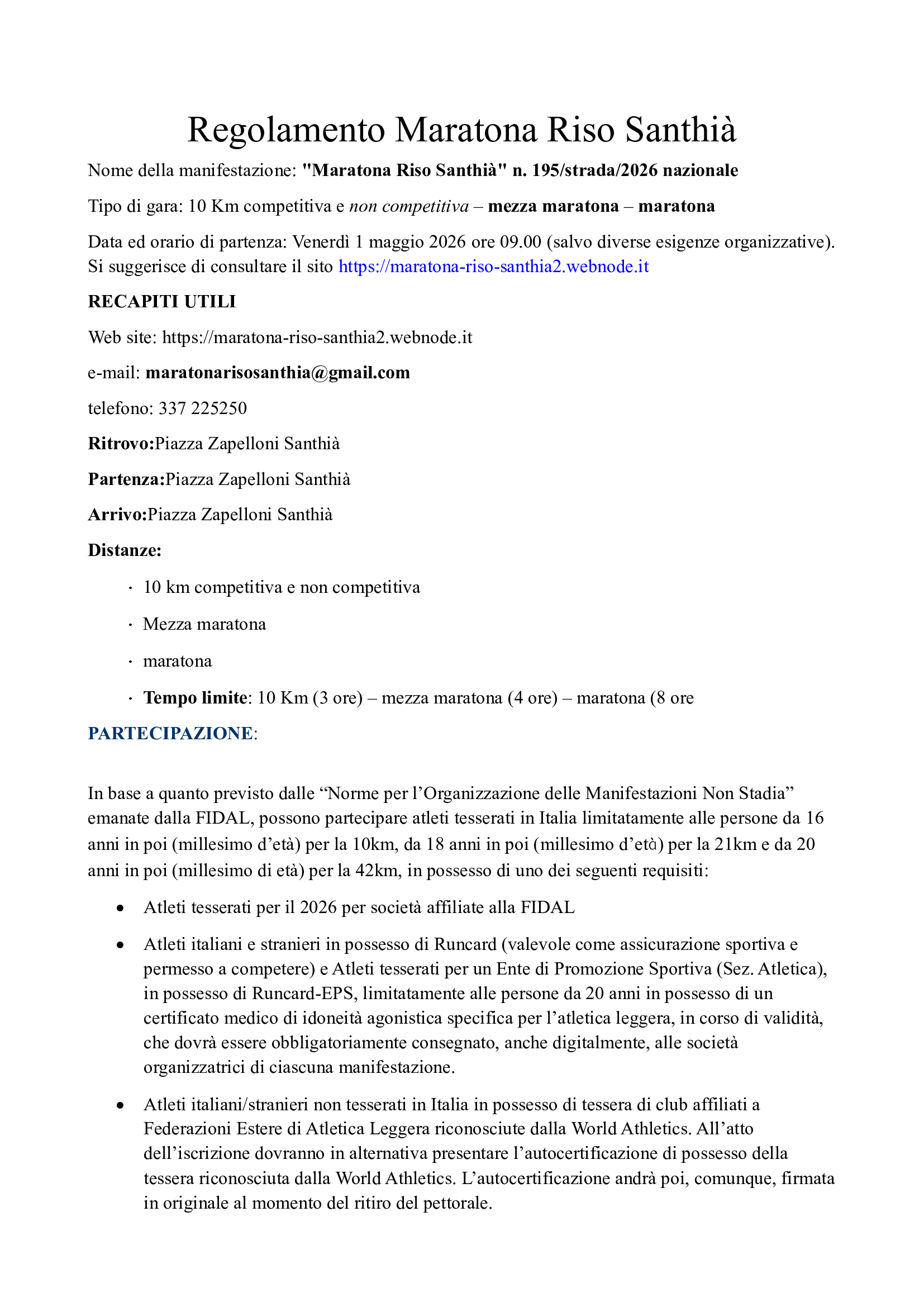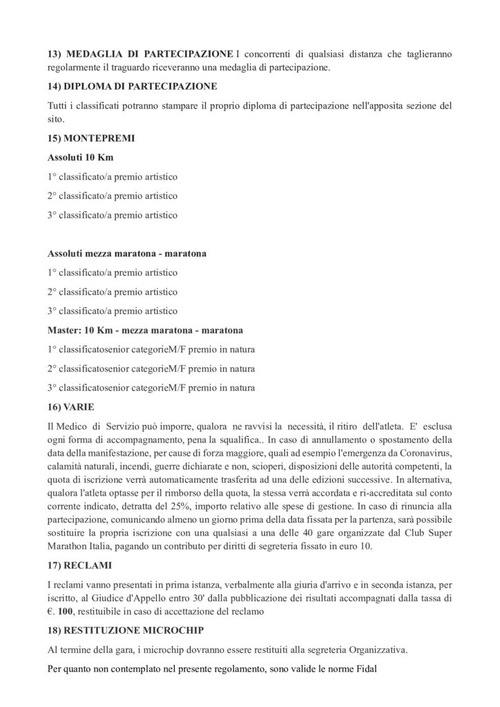 Descrizione: Maratona, MezzaMaratona e Km 10 e non compet. di Km 10. Partenza ore 09:00 da Piazza del Mercato