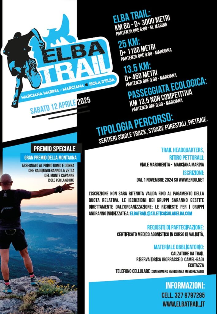 Marciana – Marciana Marina – Isola d’Elba (LI) – 15° Elba Trail Data: 12/04/2025 🏆 🏅 Classifica: Clicca qui ⏰ Orario: 06:00📍 Indirizzo: Marciana Marina🔗 Sito: http://www.elbatrail.it/📧 Email: elbatrail@atleticaisoladelba.com Volantino / Regolamento