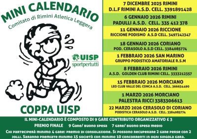 Mini Calendario UISP Rimini Data: 06/01/2026 Località: Rimini (Rn) 📌 Luogo: Emilia-Romagna / Rimini Volantino / Regolamento