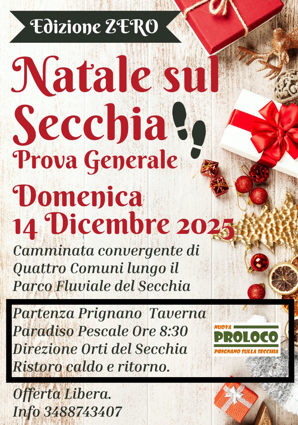 Descrizione: Edizione zero (di prova) Camminata convergente lungo il Secchia con 4 partenze da 4 comuni diversi (Castellarano, Casalgrande, Sassuolo e Prignano) e un unico ritrovo presso gli orti / oasi naturalistica Secchia per scambio di auguri . Offerta libera. Il ricavato sarà destinato a associazioni per bambini (da definire). Allegato il