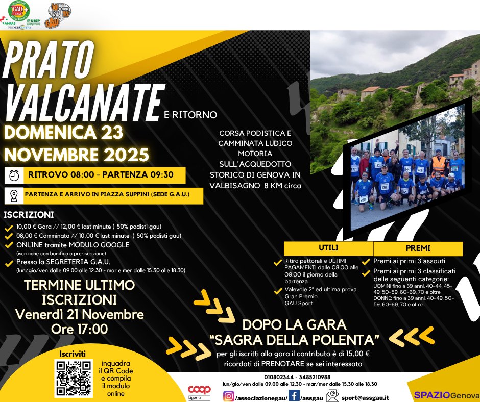 Descrizione: Competitiva e ludico motoria di Km 8. Partenza ore 09:30 da Piazza Giuliano Suppini 4 (Sede GAU)