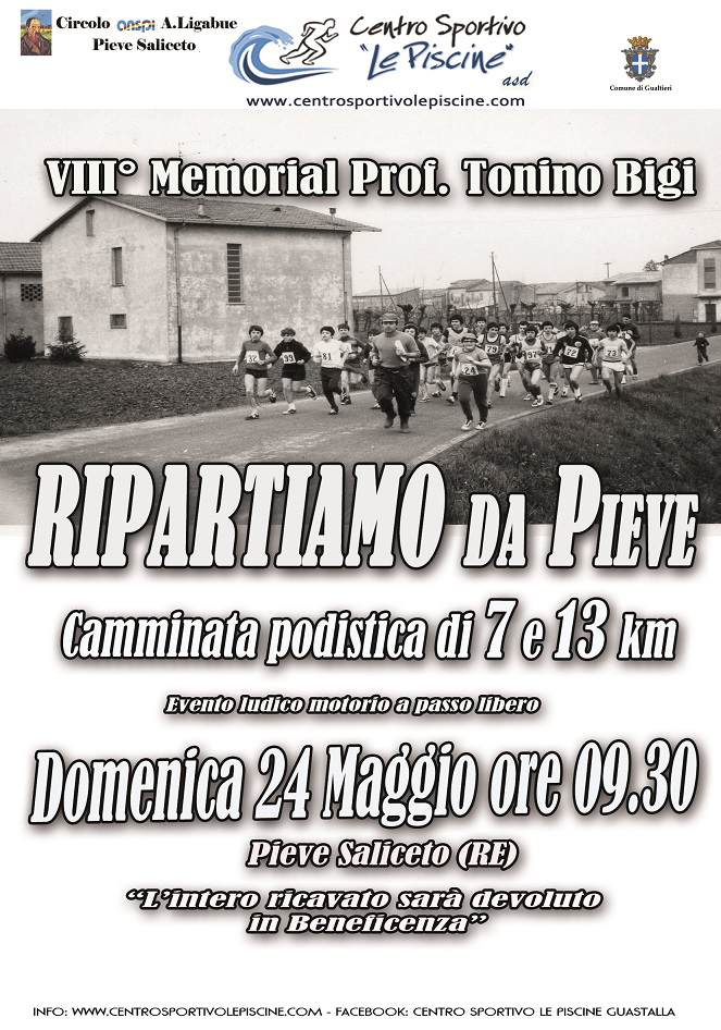 Descrizione: Camminata podistica di 7 e 13 Km nella golena del Po. Partenza alle ore 09.30 presso la chiesa di Pieve Saliceto. Iscrizione 5€ Riconoscimento individuale una Maglia.