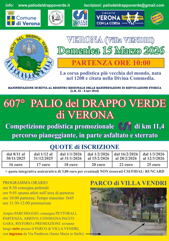 Descrizione: Competitiva di Km 11,4 e ludico motoria di km 16 - 10 - 5,9. Partenza ore 08.00/10:00 (compet. ore 10:00) c/o Villa Vendri