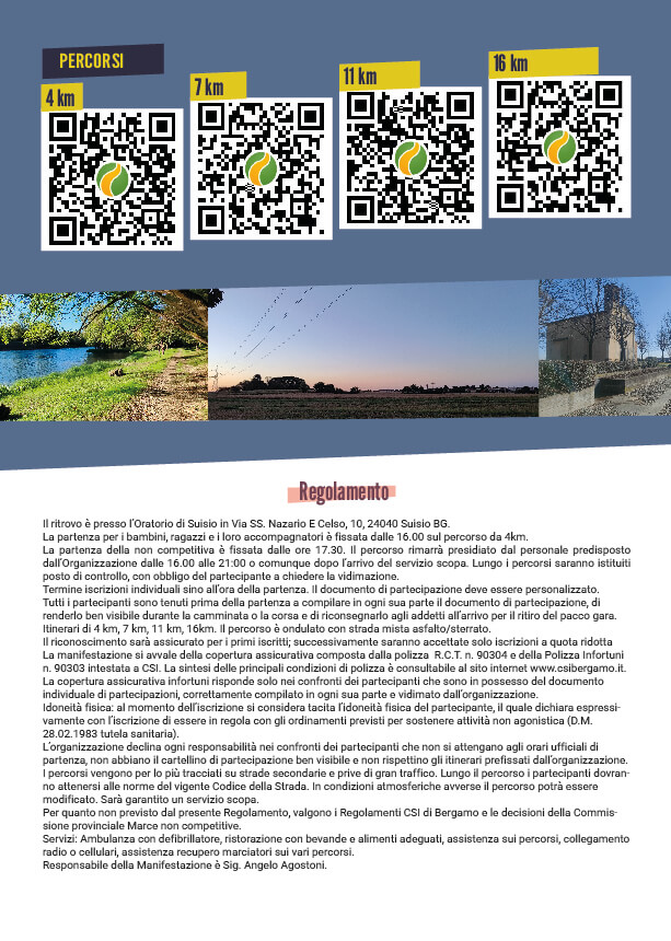 Iscrizione e partenza atleti dalle 17:30 Pasta party incluso