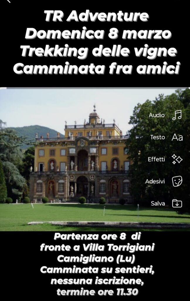 Descrizione: Camminata collettiva fra amici, tutti insieme. Partenza ore 8 davanti al cancello in alto della villa . Non è una corsa, nessuna iscrizione, non si paga niente. Il percorso è in gran parte su sentieri con dislivello di circa 400m . Ritrovo dalle ore 7,50 . Consigliate scarpe da sterrato. Termine previsto ore 11.30