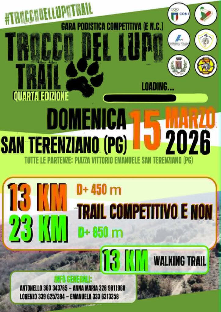 Descrizione: Trail competitivo di Km 23 e compet. e non di Km 13. Partenza ore 09:00 (Km 23) e ore 10:00 (Km 13) da Piazza Vittorio Emanuele