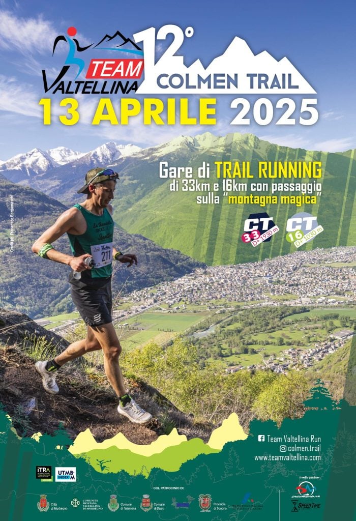 XII^ Colmen Trail Data: 13/04/2025 Località: Sondrio (SO) 🏆 🏅 Classifica: Clicca qui 📌 Luogo: Lombardia / Sondrio⏰ Orario: 08:15📍 Indirizzo: Morbegno🔗 Sito: https://teamvaltellina.com/colmen-trail/📧 Email: info@teamvaltellina.com📞 Telefono: 3429427991 Volantino / Regolamento